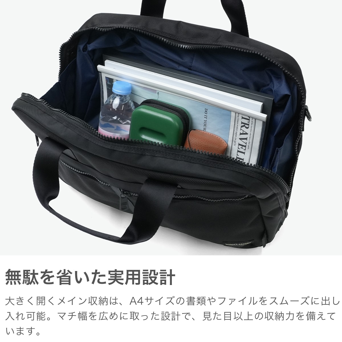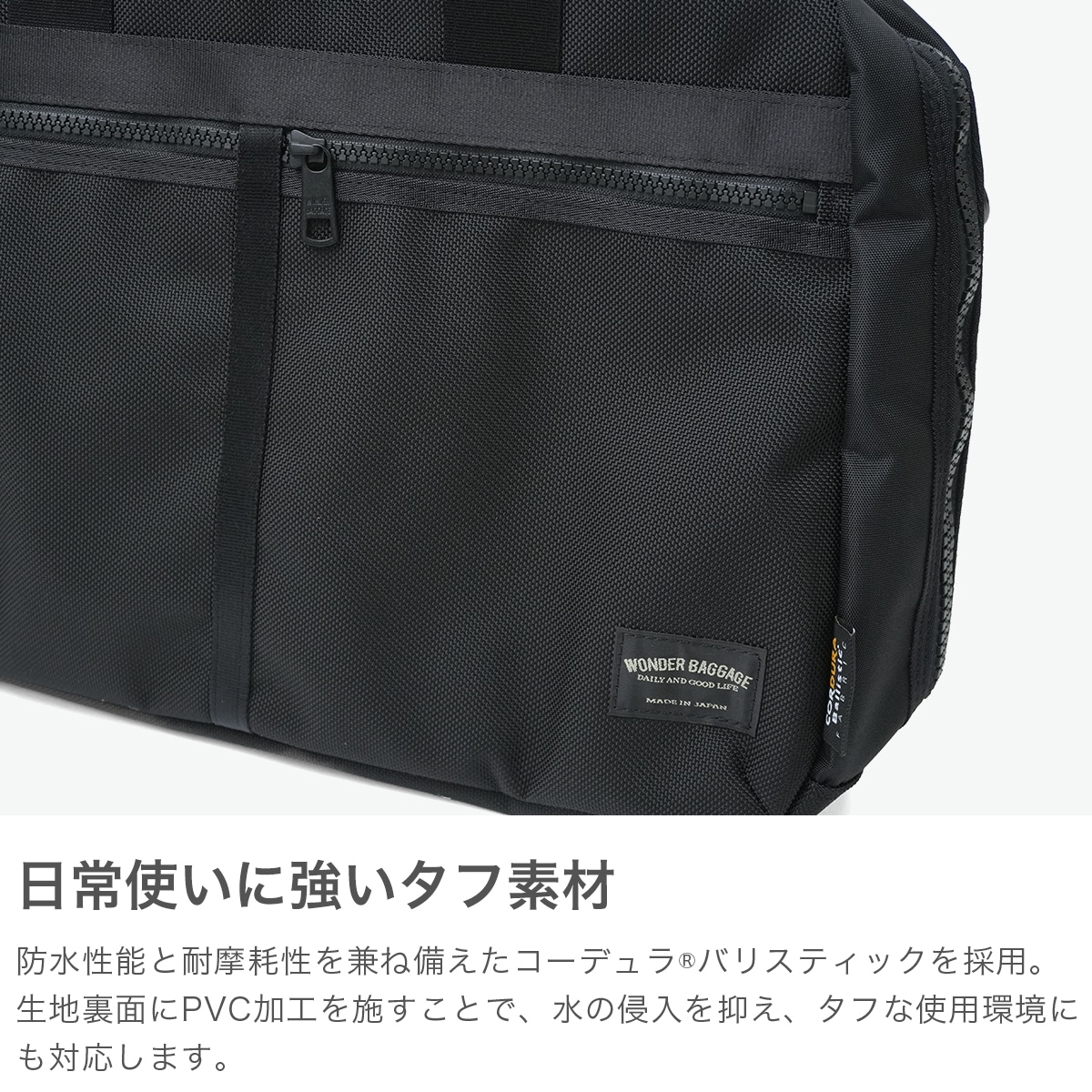 耐摩耗性と防水性に優れたコーデュラバリスティックナイロンを採用したブリーフケース。A4サイズ対応のメイン収納に、15Lの実用的な容量を確保しながら、軽量で扱いやすい設計です。シンプルで洗練されたデザインはビジネスからビジカジまで幅広く対応。毎日の通勤や営業シーンを快適に支える一品です。