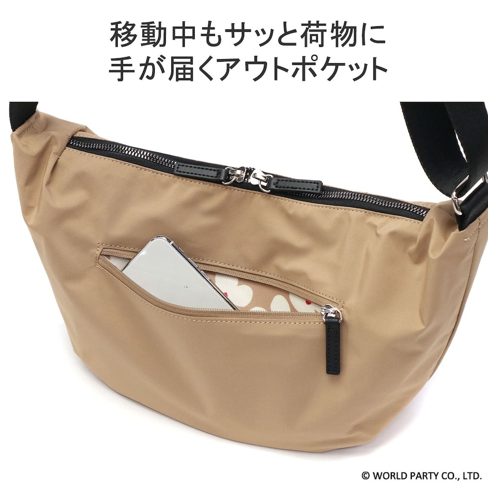 見た目以上に荷物が収まりお出かけシーンにぴったりな、ゴンドラショルダーM。本体内外には小物がしまえるポケットを設けており、バッグの中をすっきりと保てます。本体素材には、耐水性・撥水性に優れた高機能素材AQUASTOPPERを使用しているので、急な雨天にも安心。また、カラーごとに異なる可愛らしい内装デザインで、使う度気分が上がる仕上がりとなっています。
