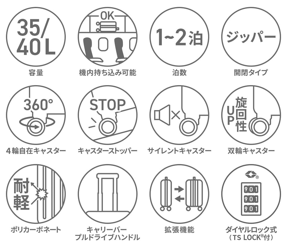 ・機内持ち込み可能サイズは航空会社や飛行機の機種などによって異なります。詳細につきましては、各航空会社へ直接お問い合わせください。