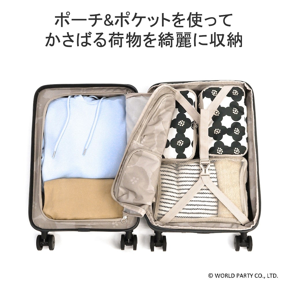 “雨の日を楽しく過ごしてもらいたい”というレイングッズメーカーならではの観点による、華やかで明るい色使い&デザインが特徴のスーツケースです。コンパクトな設計ながら、40Lまで大きくなる拡張機能を搭載。また荷物の仕分けに便利なポーチも付属しており「パッキングが苦手…」という方でも安心してご利用いただけます。旅先へ持ち運ぶ物だからこそ、機能的でおしゃれな物を選んでみませんか。