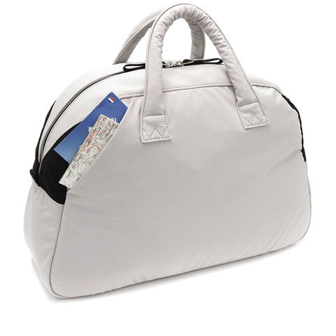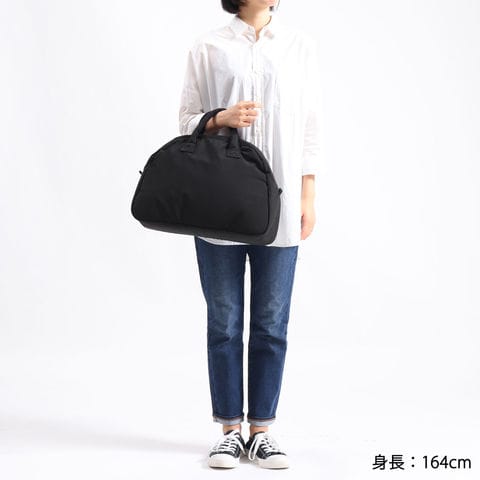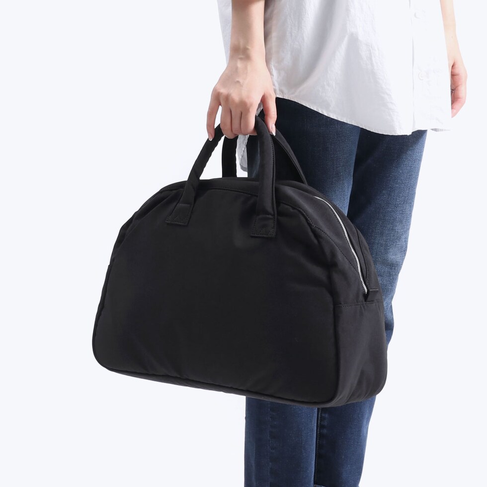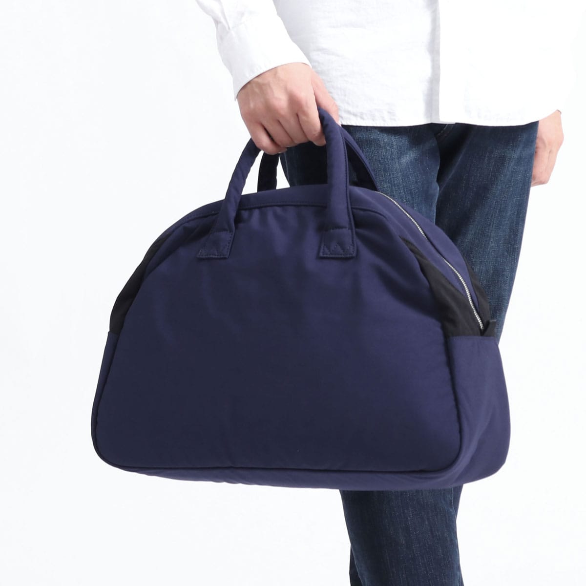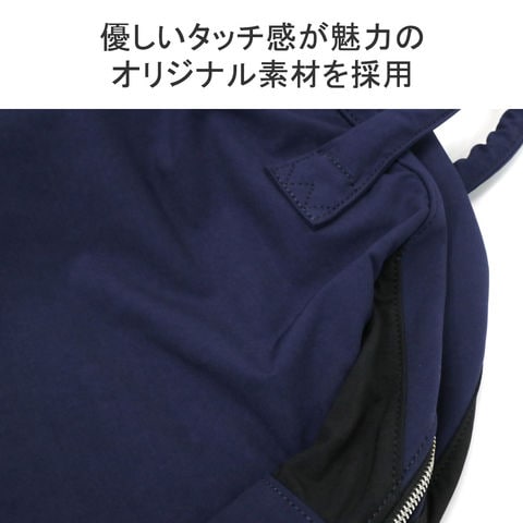 収納部はA4サイズのアイテムがゆったり収まるサイズ感になっています。内部には、サイズ感の異なるポケットが複数備わっているため、バッグの中で散らばりがちな荷物もすっきりと収納する事ができるのも使いやすさのポイントになっています。メインの素材はナイロンのジャージー編みに塩縮加工を施し、しっかりと目を詰めた手触りのよいオリジナル素材を採用しています。織物とは違う優しいタッチ感が魅力的です。