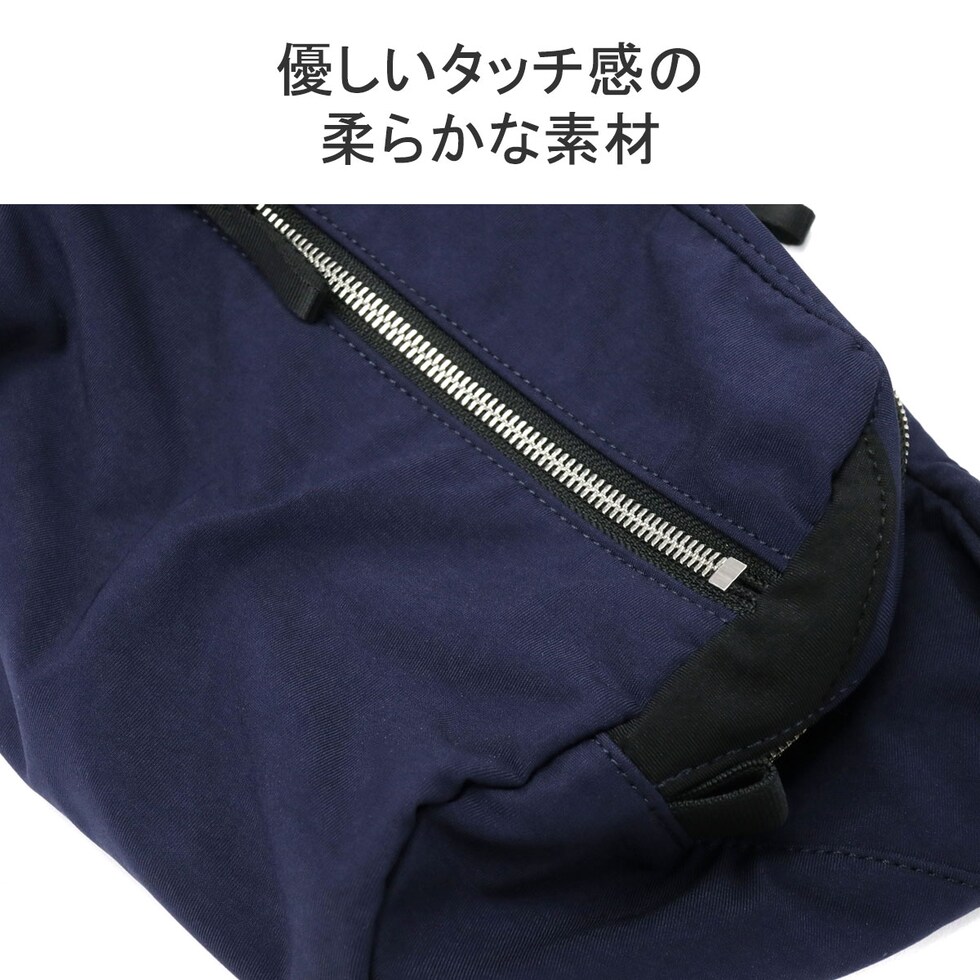 少ない荷物をコンパクトにまとめて移動したいときに使い勝手の良いサイズ感。ナイロンのジャージー編みに塩縮加工を施した手触りのよいオリジナル素材は、肌なじみがよく織物とは違う優しいタッチ感になっています。