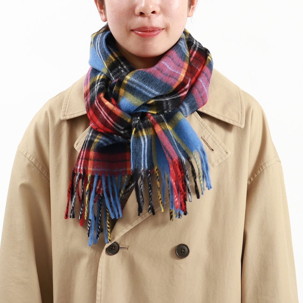 ウールとアンゴラをブレンドした上質な生地を使用し、多色使いのマルチストライプが特徴のマフラー。しなやかさと丈夫さを兼ね備え、ふんわりと柔らかい肌触りで首元を優しく暖めます。上品で鮮やかなチェック柄は、シンプルなコーディネートのアクセントに。首元がかさばらず、すっきりとした印象に仕上がっているため、男性女性問わずお使いいただけます。