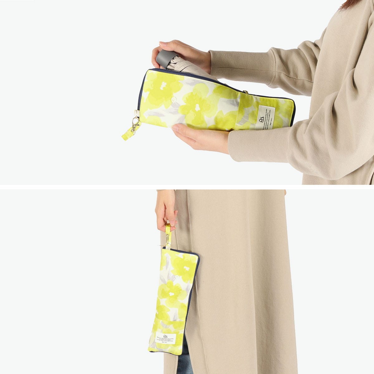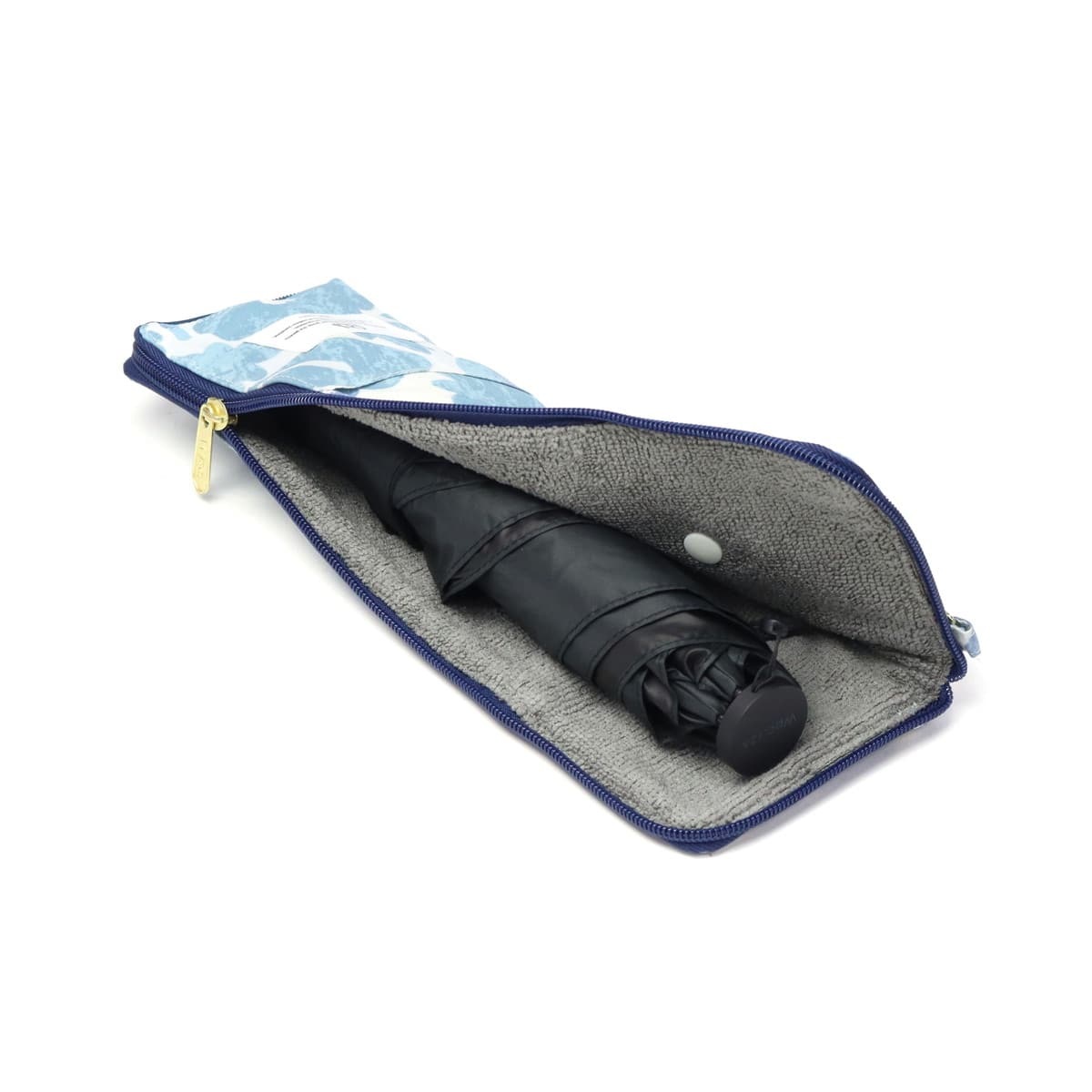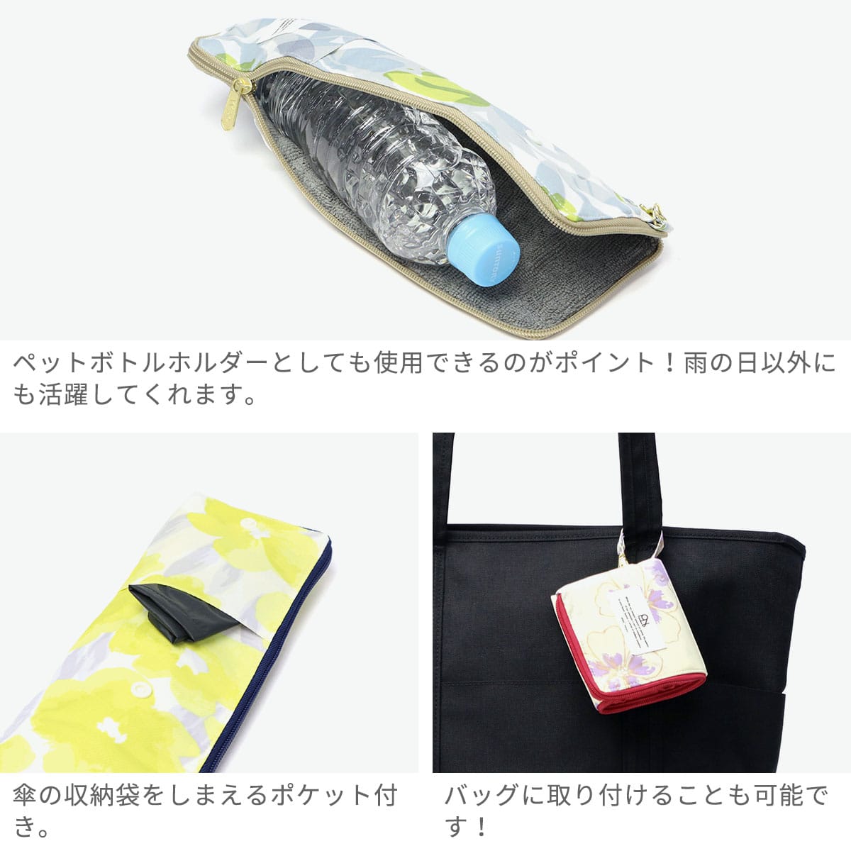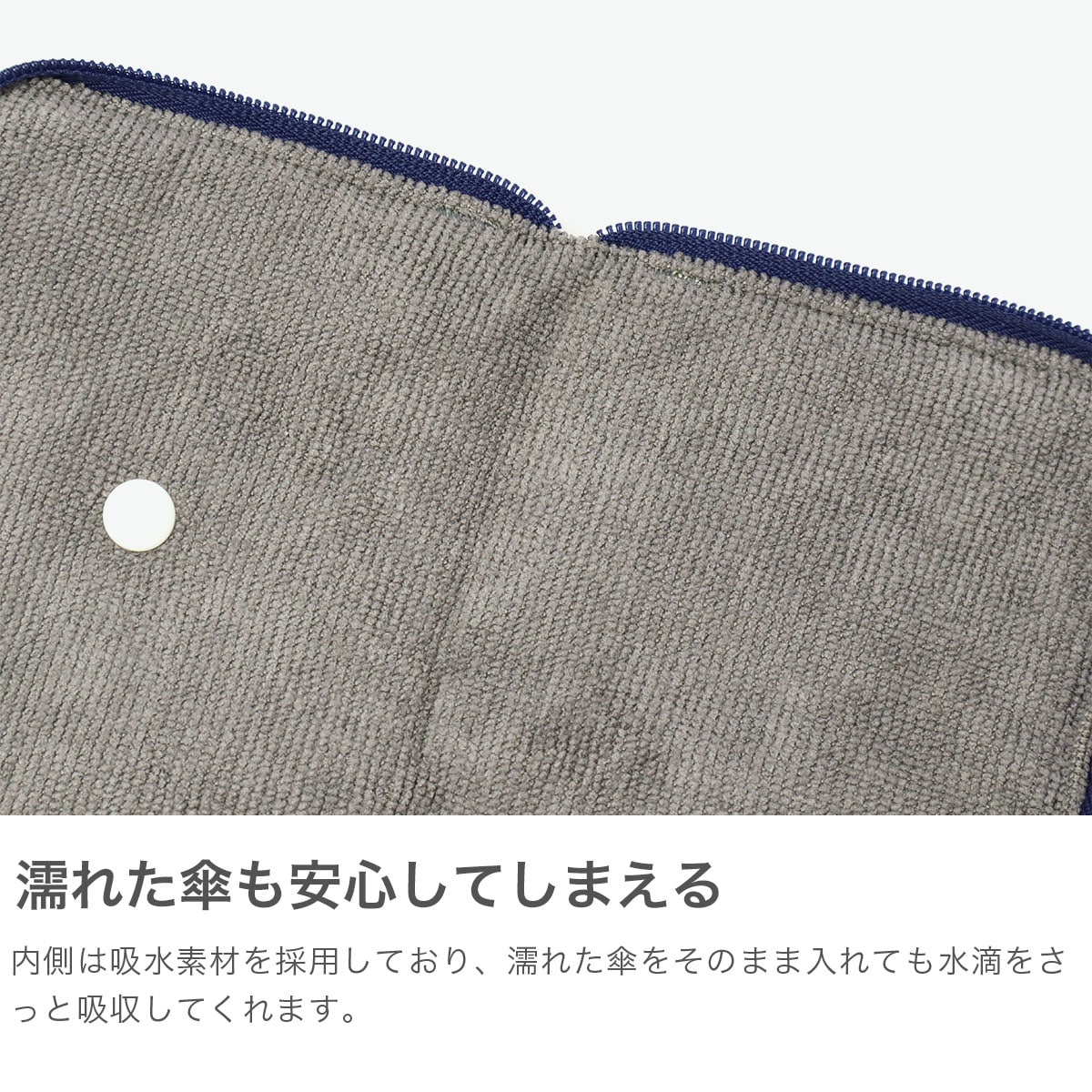 濡れた傘の持ち運びに便利なアンブレラケース。本体の内側に吸水素材を採用し水滴を吸収、外側の撥水素材が水をはじいてくれるので快適に使用できます。スナップボタンで2段階の長さ調節ができ、傘のサイズに合わせて収納可能。カラフルな絵柄が雨の日に彩りを与えてくれるアイテムとなっております。