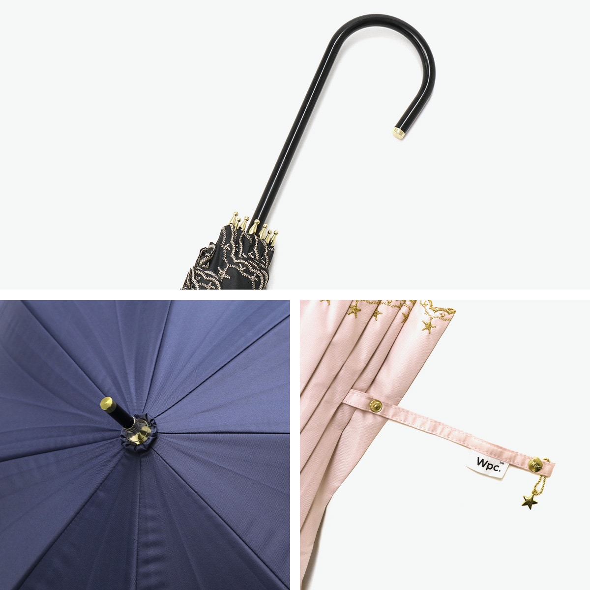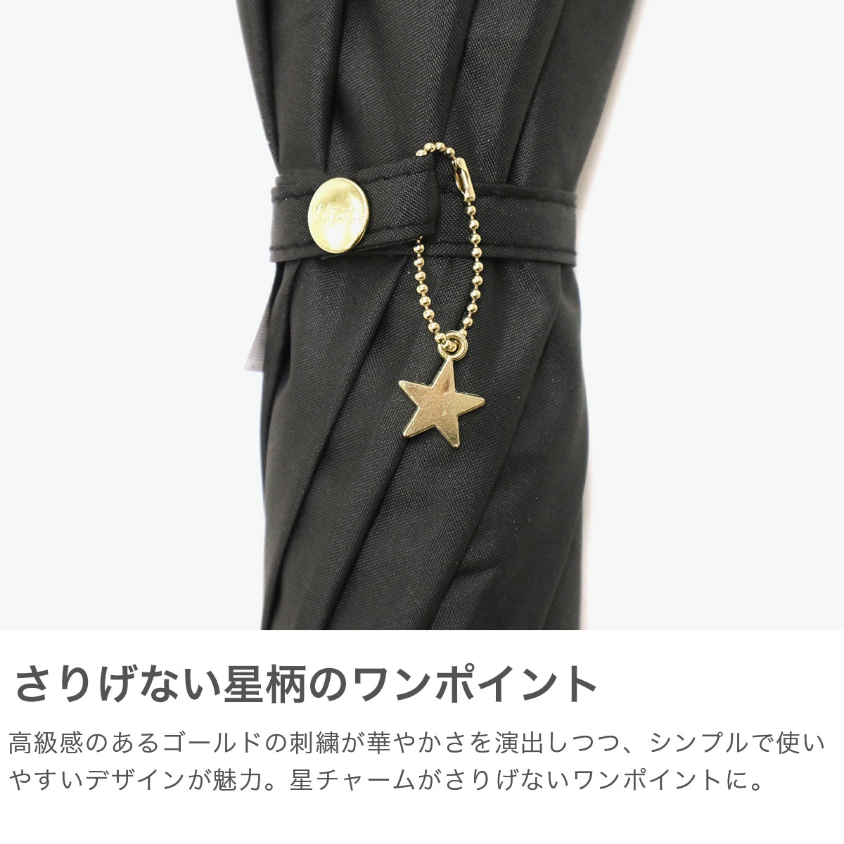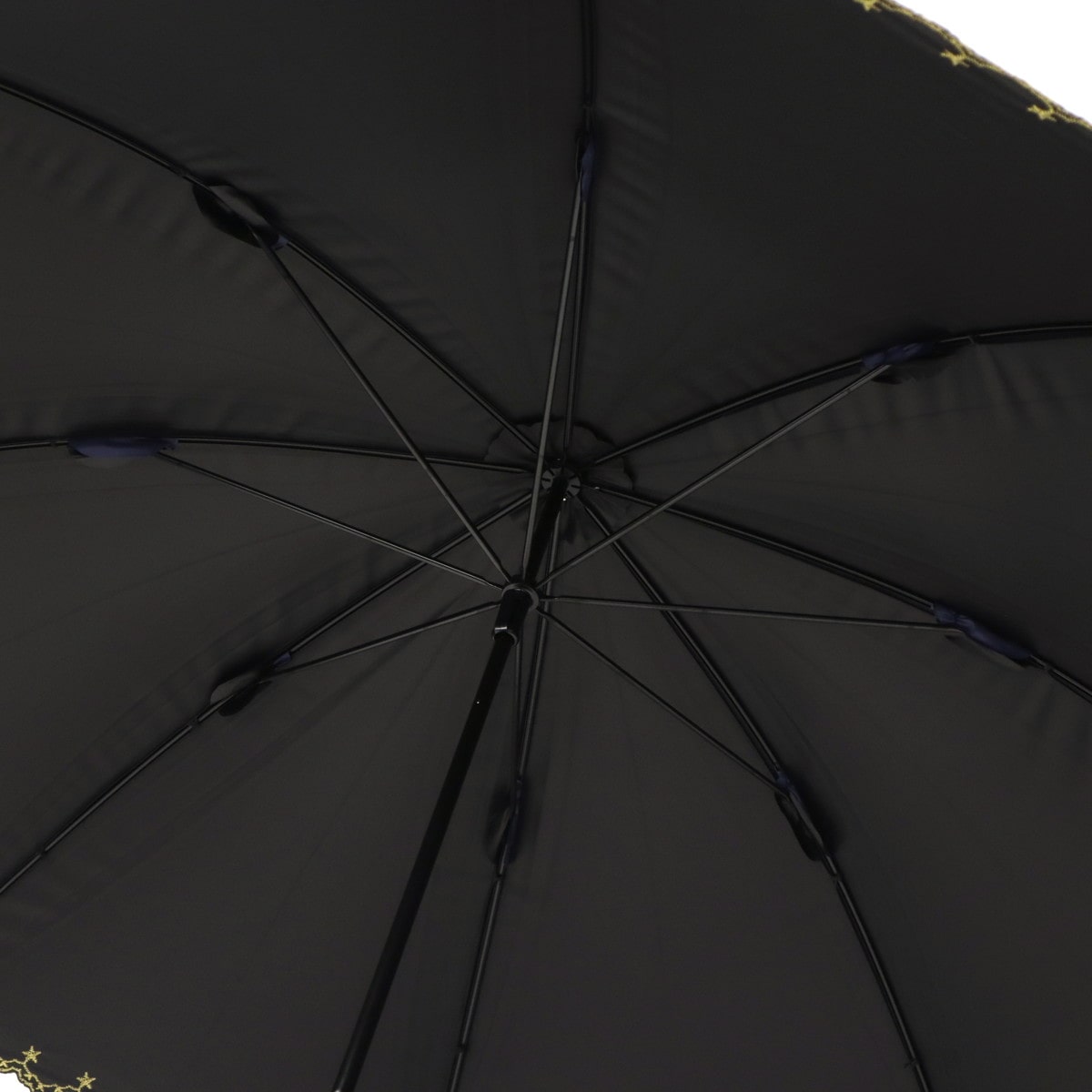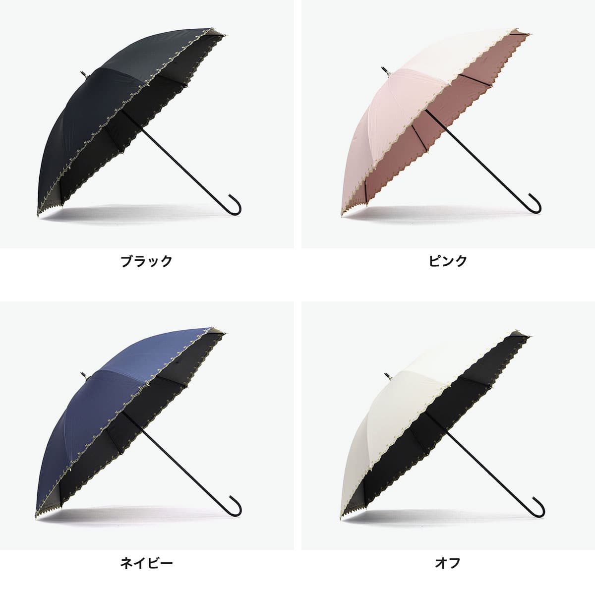 星柄とスカラップに星の刺繍をあしらった上品な日傘。スカラップがやわらかい印象を与え、さりげない星がワンポイントになっています。高級感のある刺繍が華やかさを演出。シンプルで使いやすいデザインながらも機能性面でも安心のアイテムです。