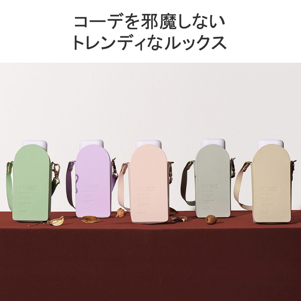 人気のタイニーサイズの日傘が、ポシェットケースタイプになって登場。ストラップでバッグ本体に取り付けたり、付属のショルダーで斜め掛けしたりと、バッグイン以外の、多彩なスタイルでの持ち運びが可能です。もちろん機能性も抜群。遮光率・UVカット率ともに100%、UPF50+を実現し、日差しから肌を守ります。
