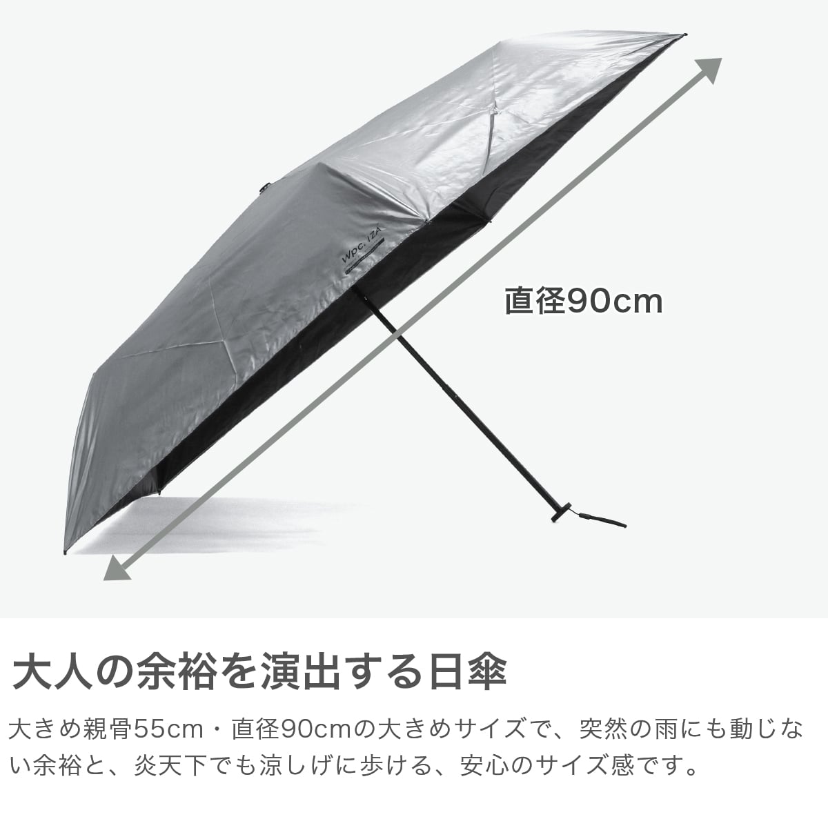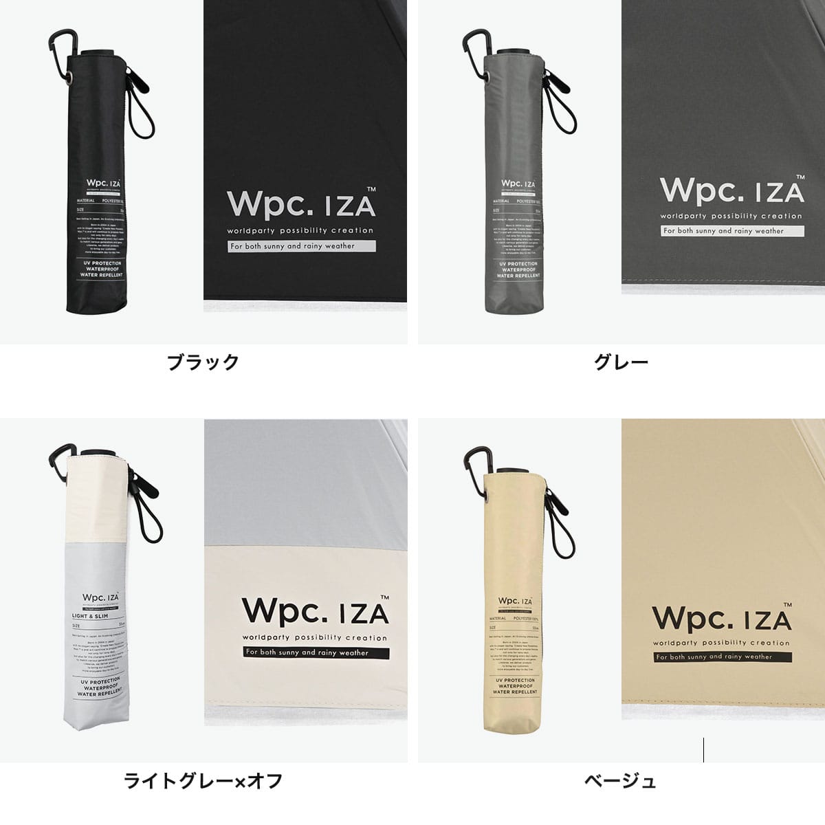 Wpc. IZA 折りたたみ傘 メンズ レディース 晴雨兼用 ダブリュピーシー 傘 日傘 雨傘 軽量 軽い コンパクト スリム 完全遮光 紫外線対策 UVカット率100% 大きめ 親骨55cm 手動 ケース付き 無地 Wpc UPF50+ LIGHT&SLIM ZA007