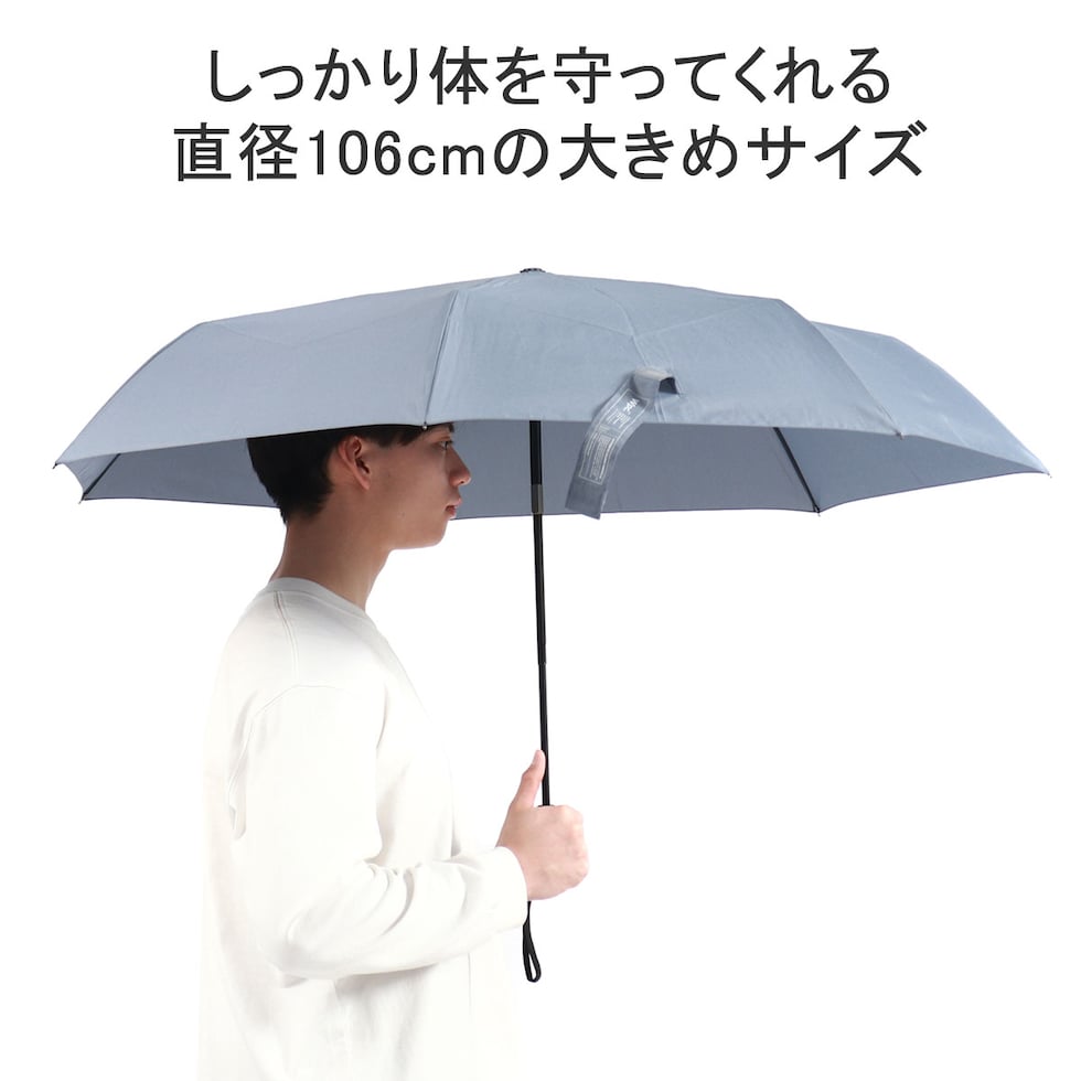 シンプルなデザインとニュアンスカラーがおしゃれな折りたたみ傘。スタンダードなルックスながら、長期的に持続する撥水加工や紫外線防止効果、さらに自動開閉システムを搭載。ボタンを押すだけで開閉できるので、荷物が多い日などに非常に便利です。折りたたみ傘でありながらしっかり大きめで、男性でも安心のサイズ感となっています。