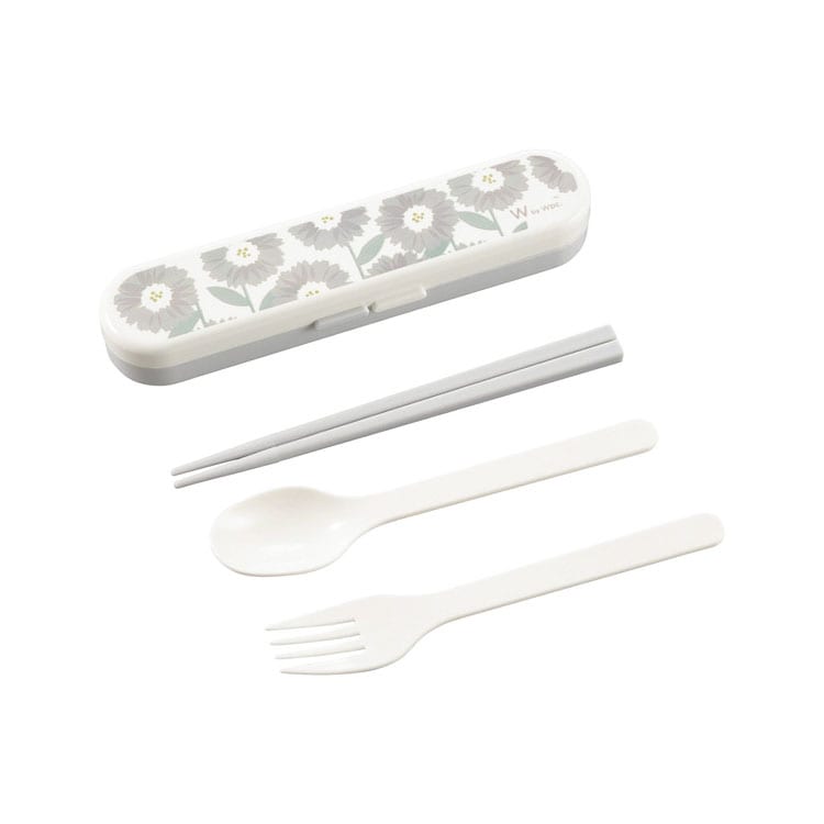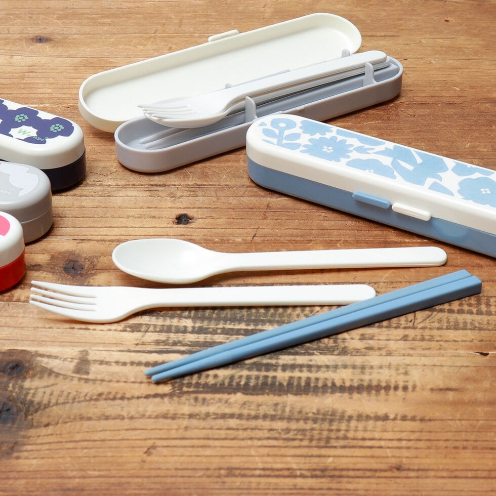 箸、スプーン、フォークが揃ったカトラリーセット。ランチタイムが楽しくなる花柄の可愛らしいデザインがポイント。別売りのランチ巾着やランチボックスとお揃いでセット使いすることで、より華やかになりオススメです。