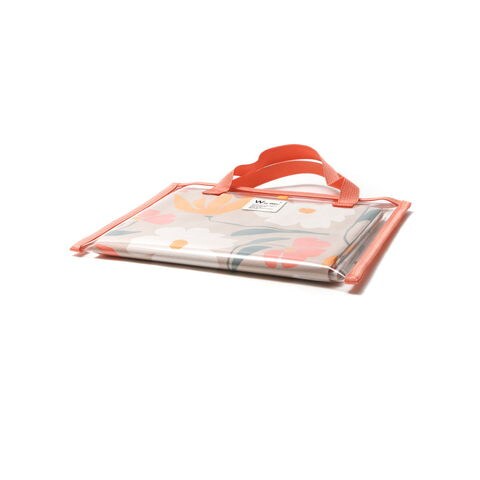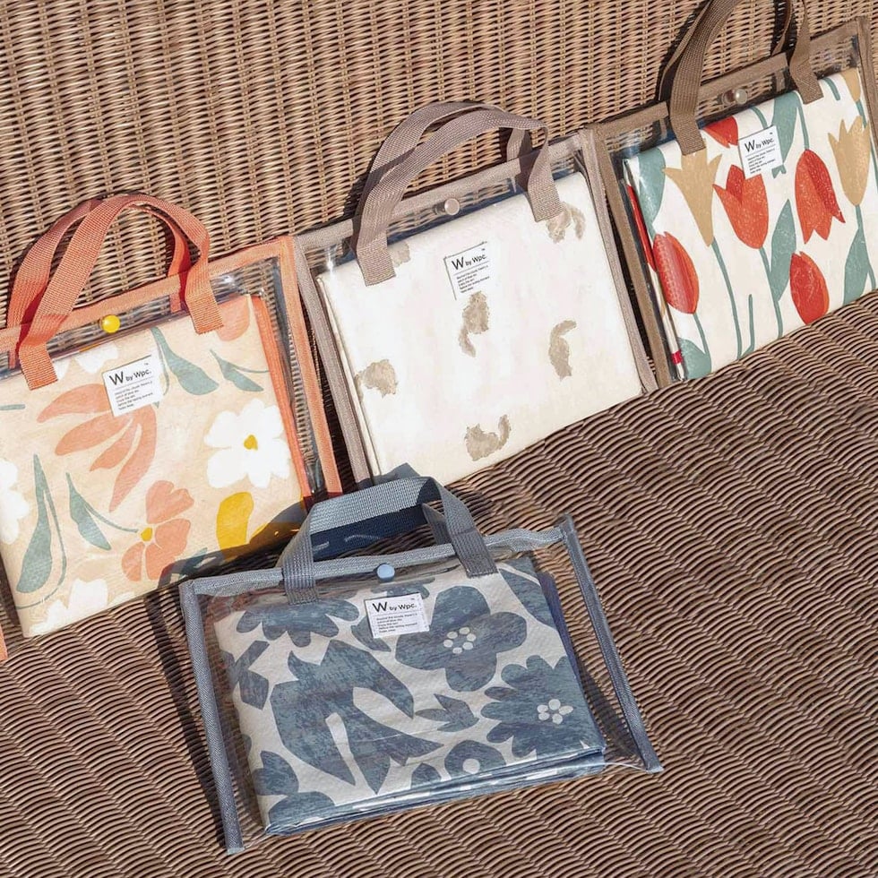 キャンプやピクニックなどで活躍するレジャーシート。おでかけの気分を上げてくれる華やかで明るいデザインがポイントです。本体は140×90cmの1?2人用サイズ。コンパクトな大きさで使い勝手がよく、ハンドル付きの収納袋もセットになった持ち運びに便利なアイテムとなっています。