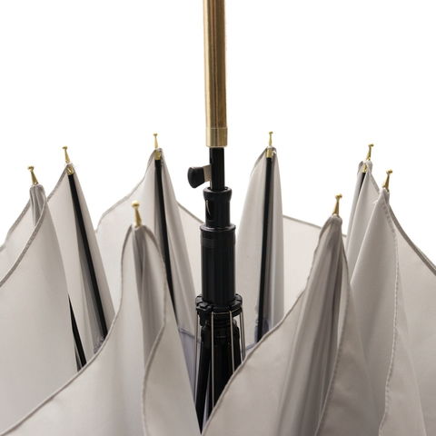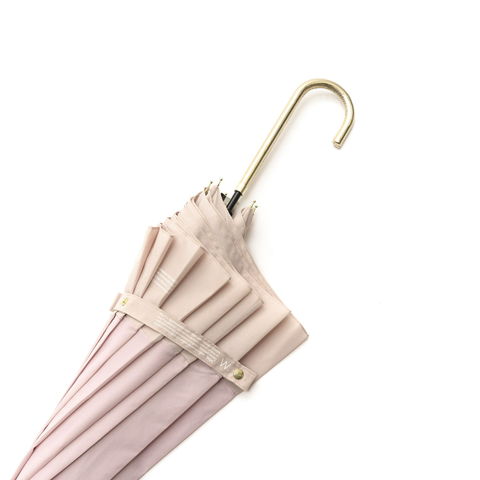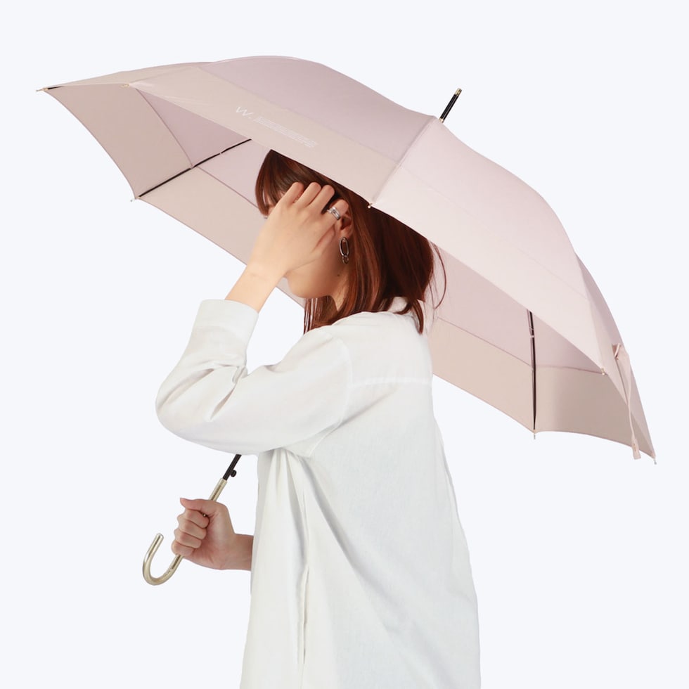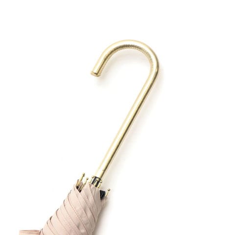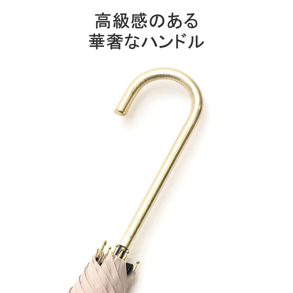 絶妙なくすみカラーの組み合わせが可愛らしい晴雨兼用傘。本体は、ワンプッシュで開けるジャンプ式を採用しており、片手でも簡単に開くことができます。またゴールドの華奢な持ち手やワンポイントロゴが装飾された、フェミニンなデザインがポイントです。