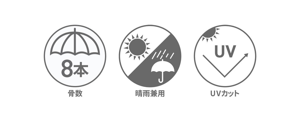・本商品は雨傘としてお使いいただくことを主としておりますが、紫外線防止効果があるので、日傘としてもお使いいただけます。ただし、商品の色によって紫外線遮蔽率が異なります。(目安|濃色:約90%、淡色:約80%)