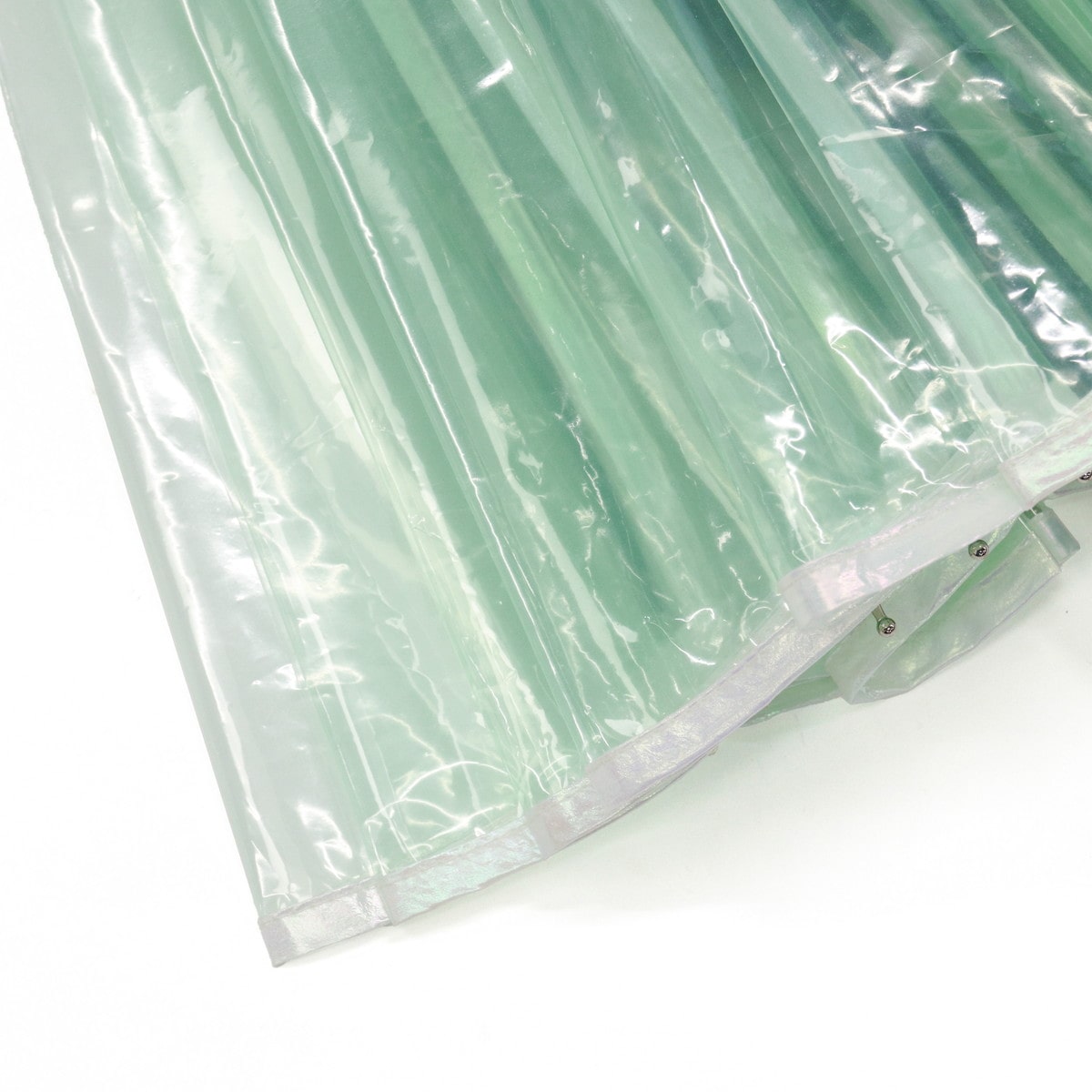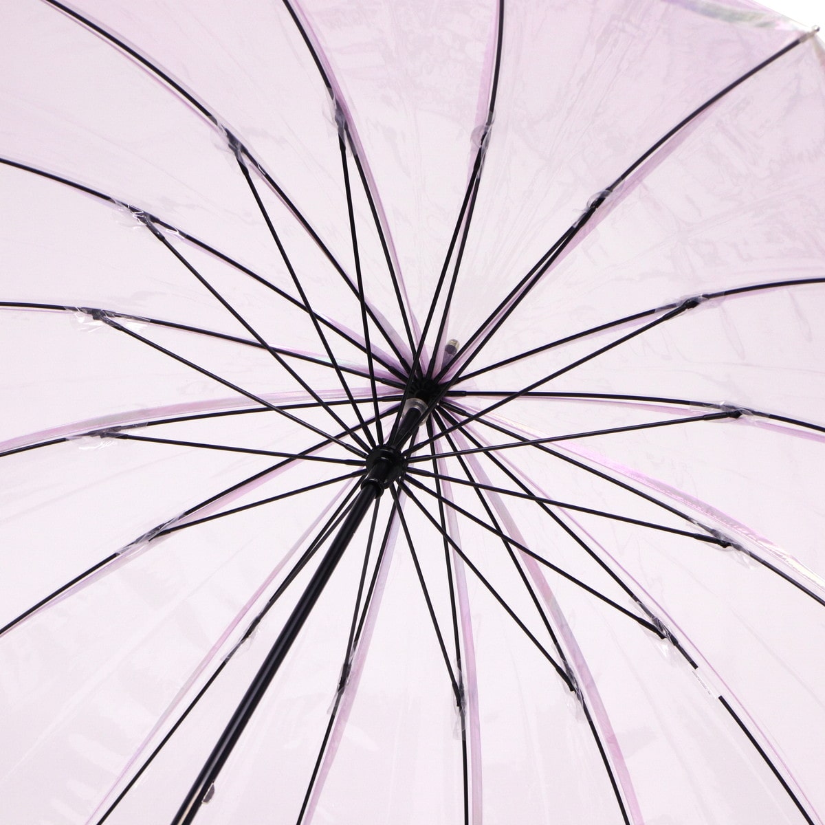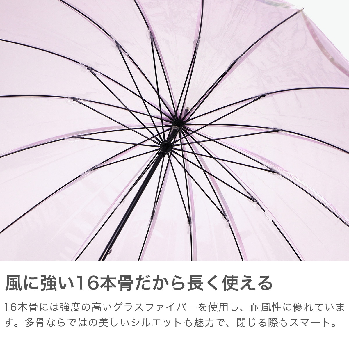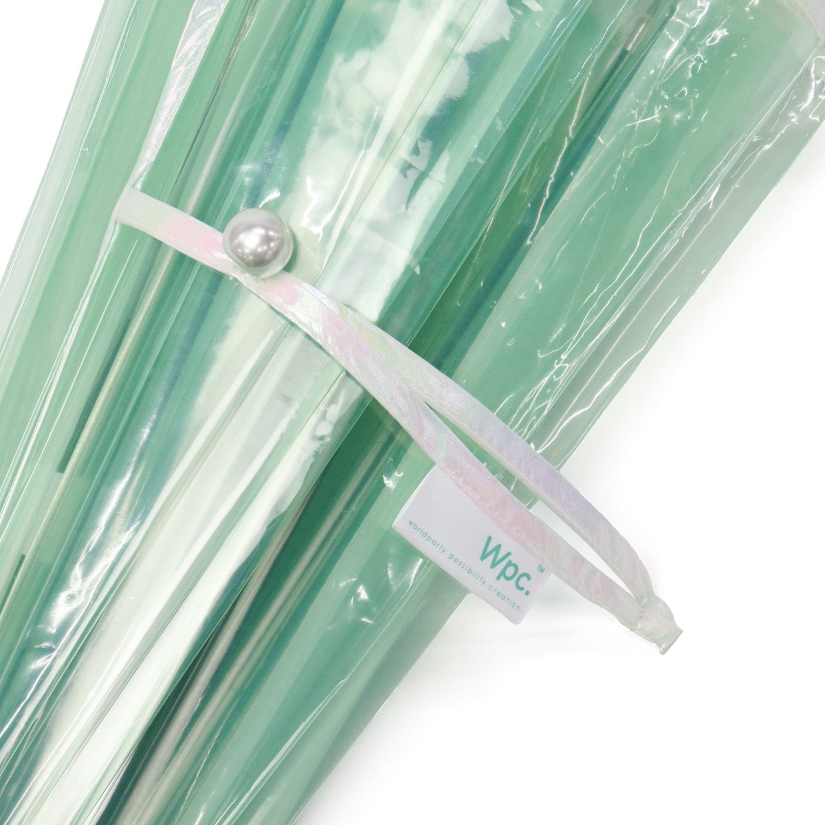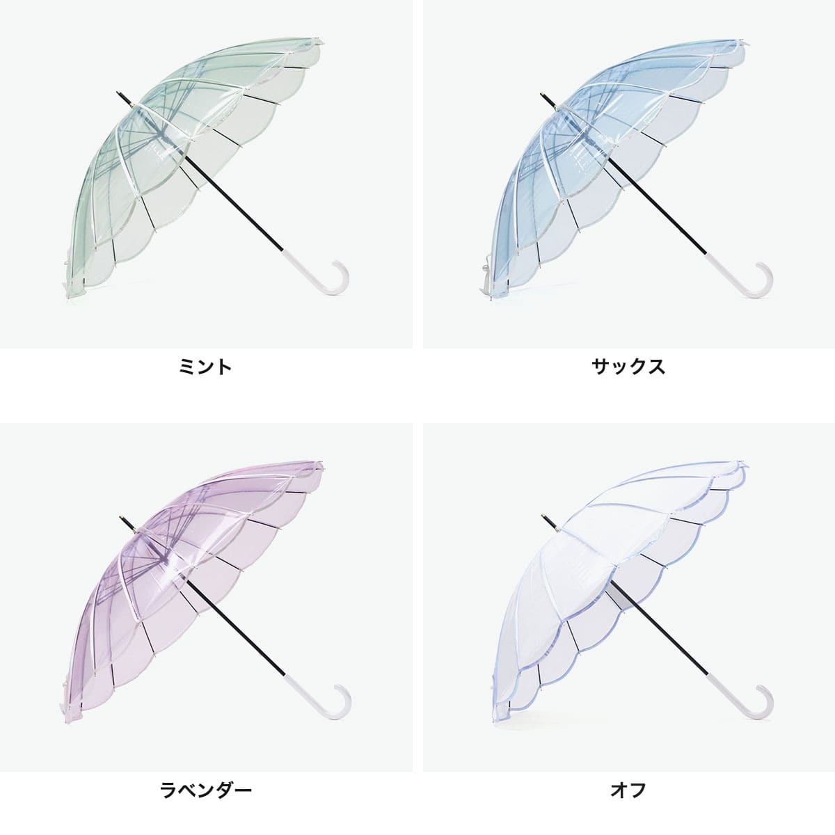 マーメイドが纏う貝殻をイメージとした美しい雨傘。水面の輝きを連想するキラキラとしたパイピング、パールのような輝きの手元とパールボタンが、幻想的な雰囲気を演出します。16本の多骨が、美しいフォルムと優れた耐風性を実現。長く愛用できる、使い捨てにしないビニール傘です。