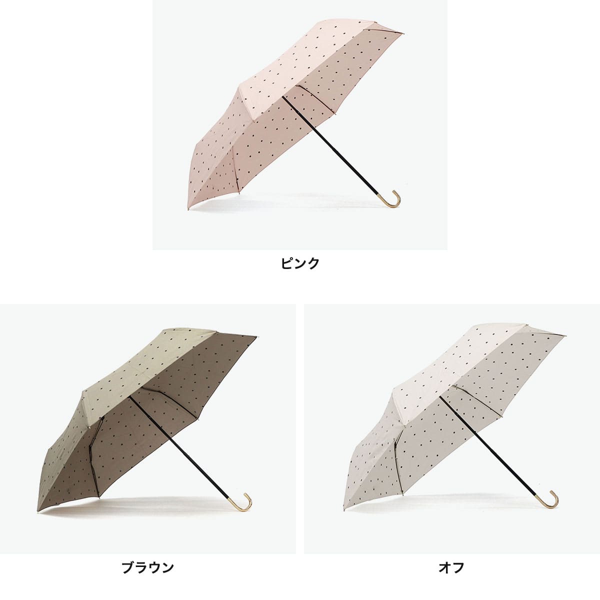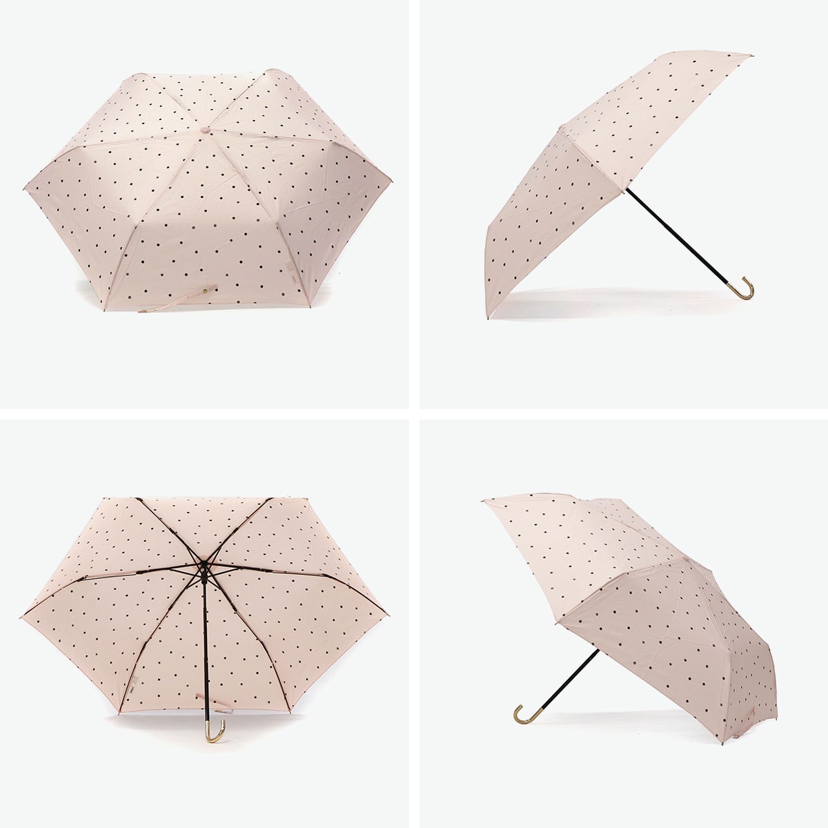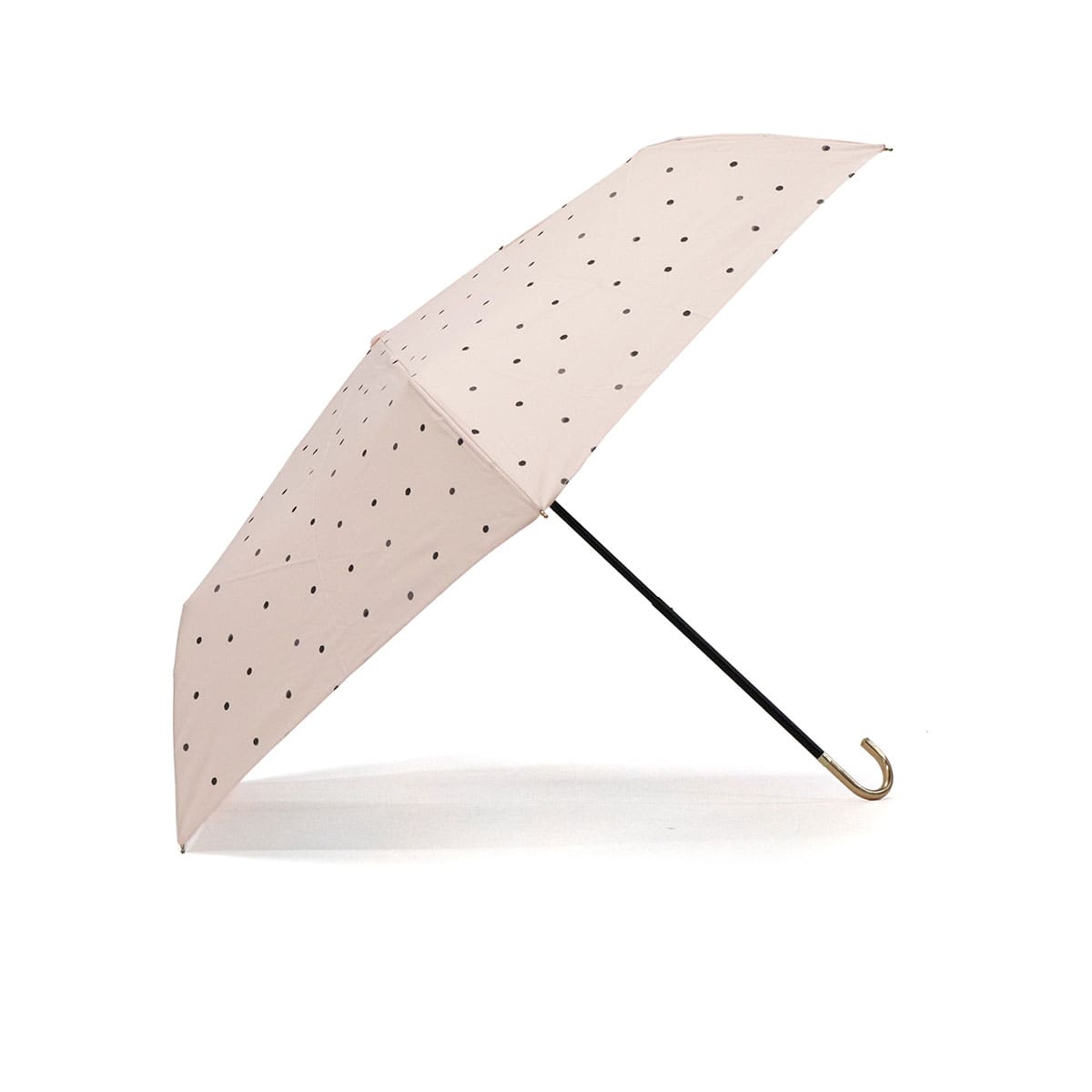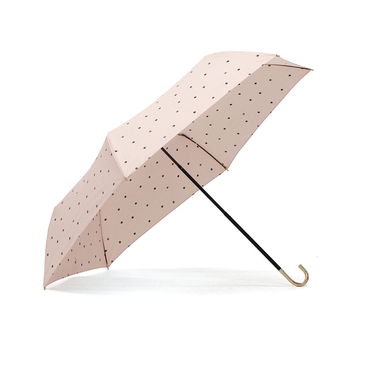 軽量&コンパクトで持ち運びラクラクな折りたたみ傘。 晴雨兼用でUVカット機能も搭載し、日差しも雨もスマートにガードします。落ち着いたドット柄がエレガントな雰囲気を演出。ゴールドの持ち手が上品なアクセントを添え、通勤・通学・お出かけにぴったりの一本です。