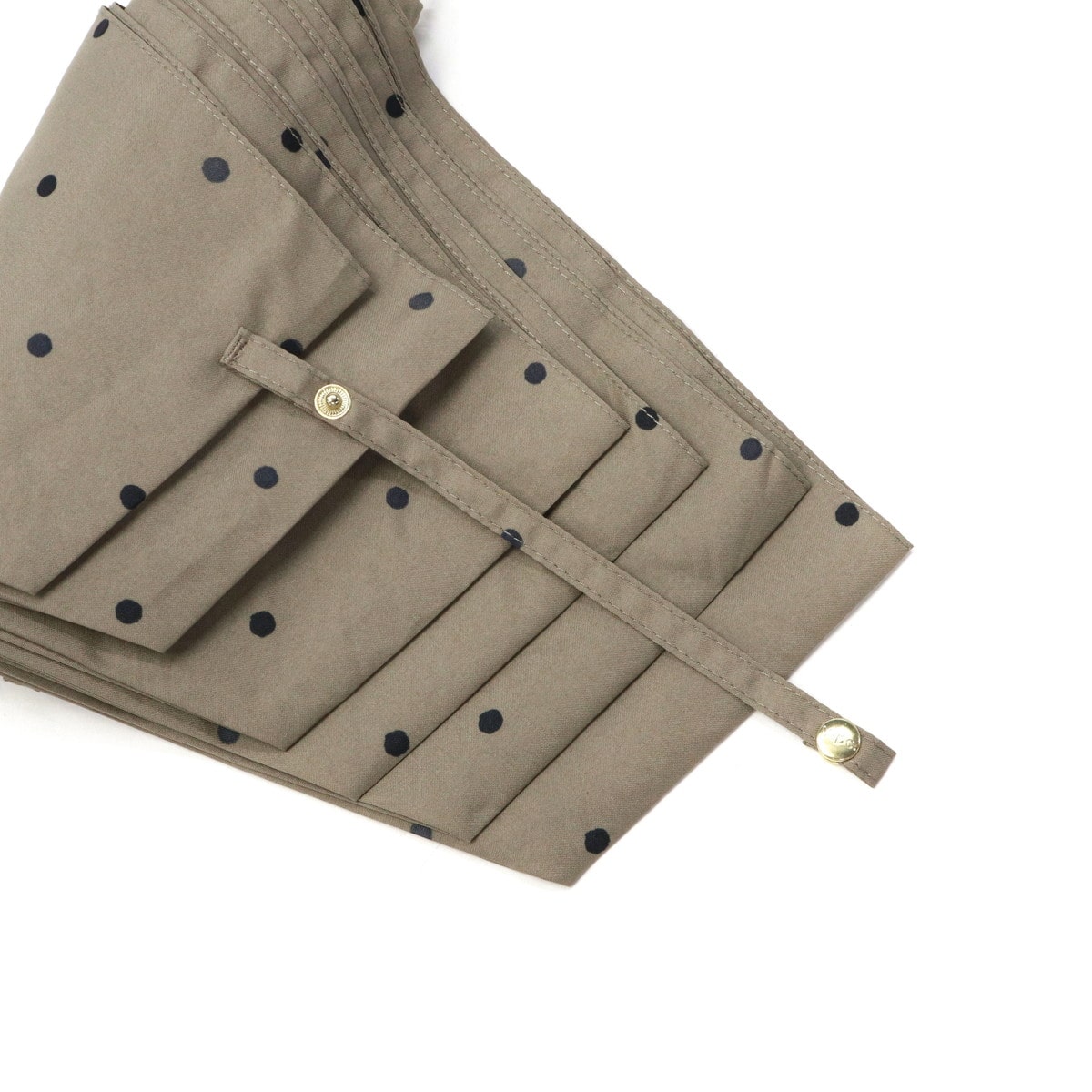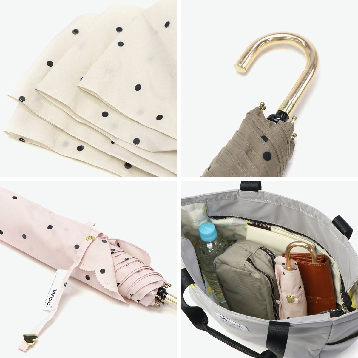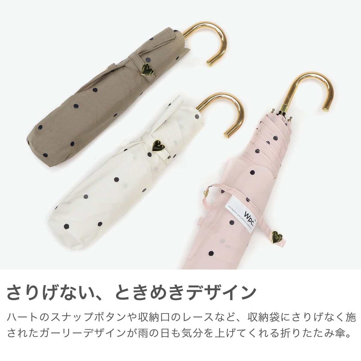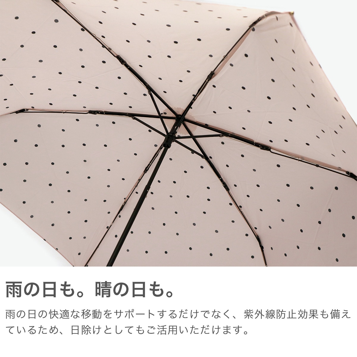 軽量&コンパクトで持ち運びラクラクな折りたたみ傘。 晴雨兼用でUVカット機能も搭載し、日差しも雨もスマートにガードします。落ち着いたドット柄がエレガントな雰囲気を演出。ゴールドの持ち手が上品なアクセントを添え、通勤・通学・お出かけにぴったりの一本です。