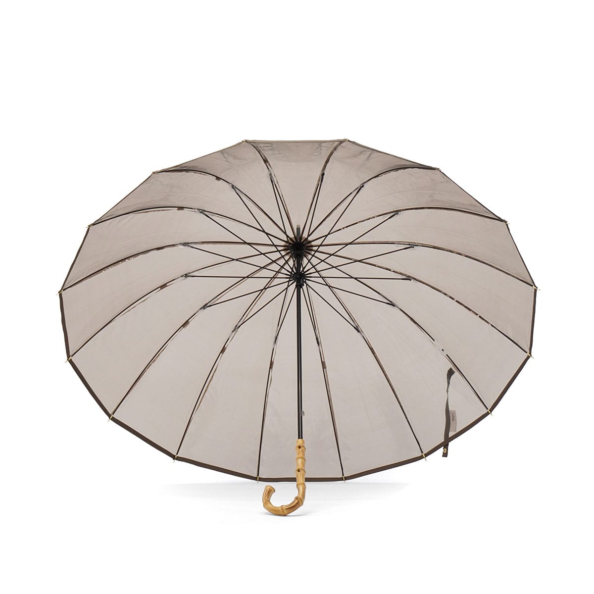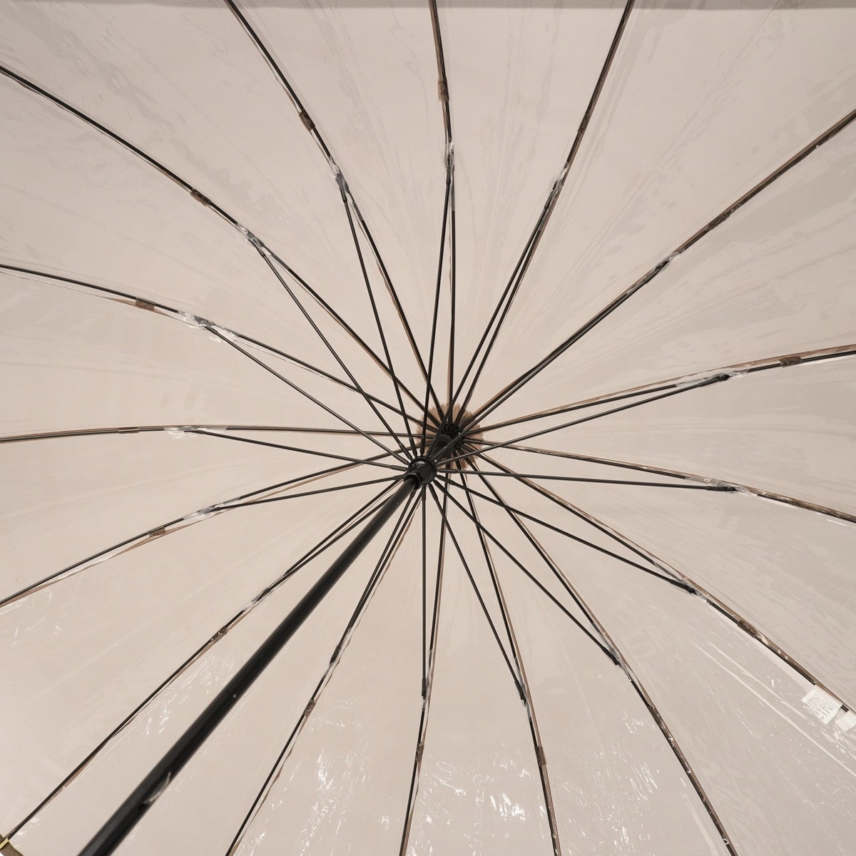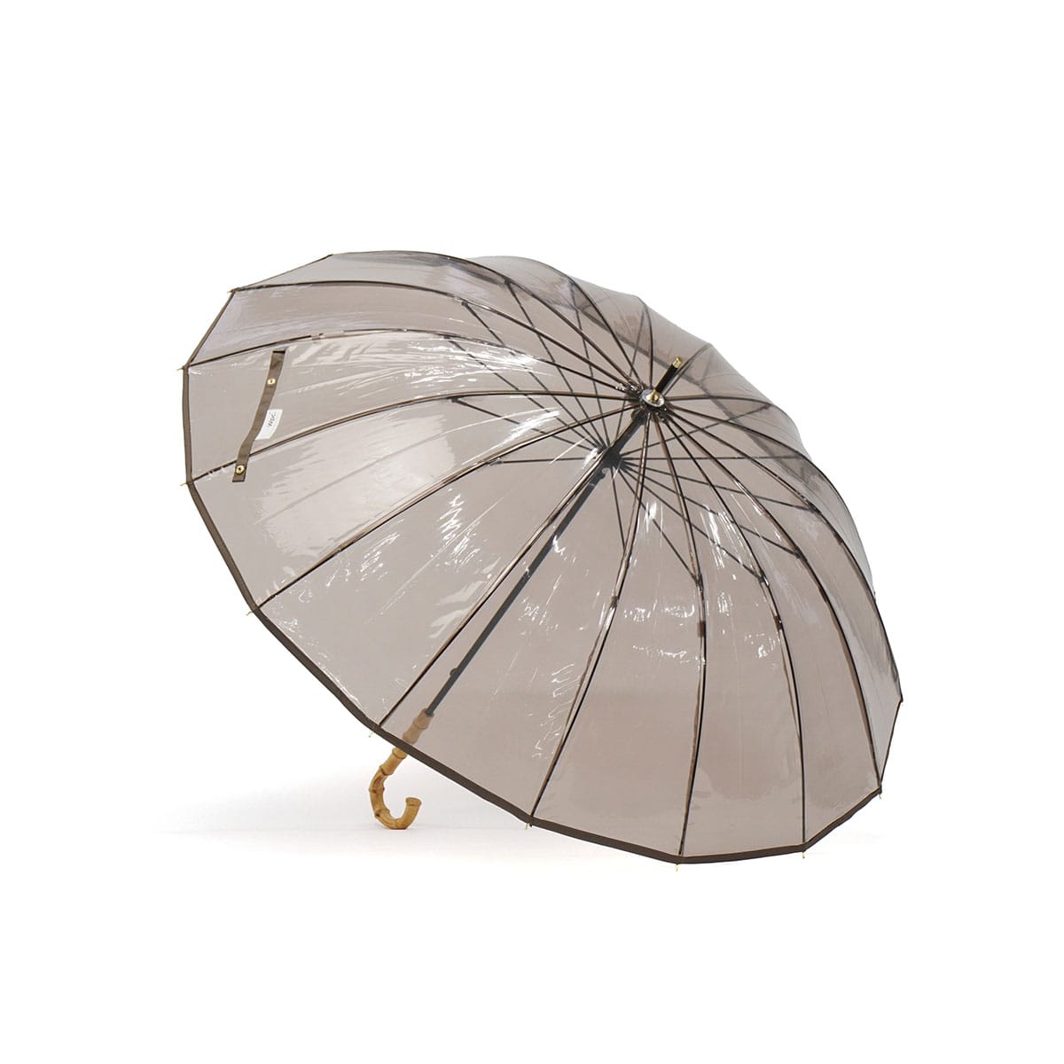風に強い16本骨構造で、安定感のある使い心地を実現したビニール傘。軽くて折れにくいグラスファイバー骨を採用し、長く愛用できる設計です。透明素材が視界を確保しつつ、洗練された印象を演出。節付きで握りやすいバンブーハンドルが上品さをプラスし、大人のスタイルに自然と馴染みます。通勤・通学にも使いやすい大きめサイズです。