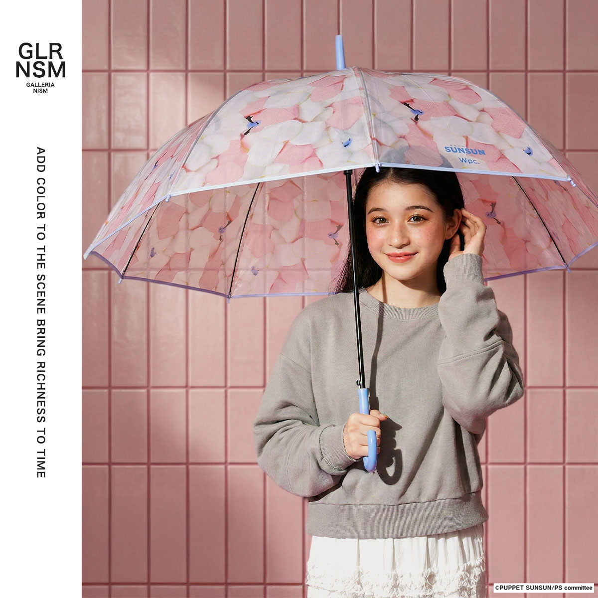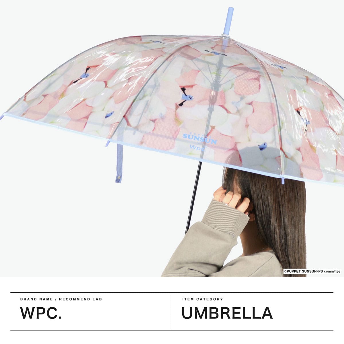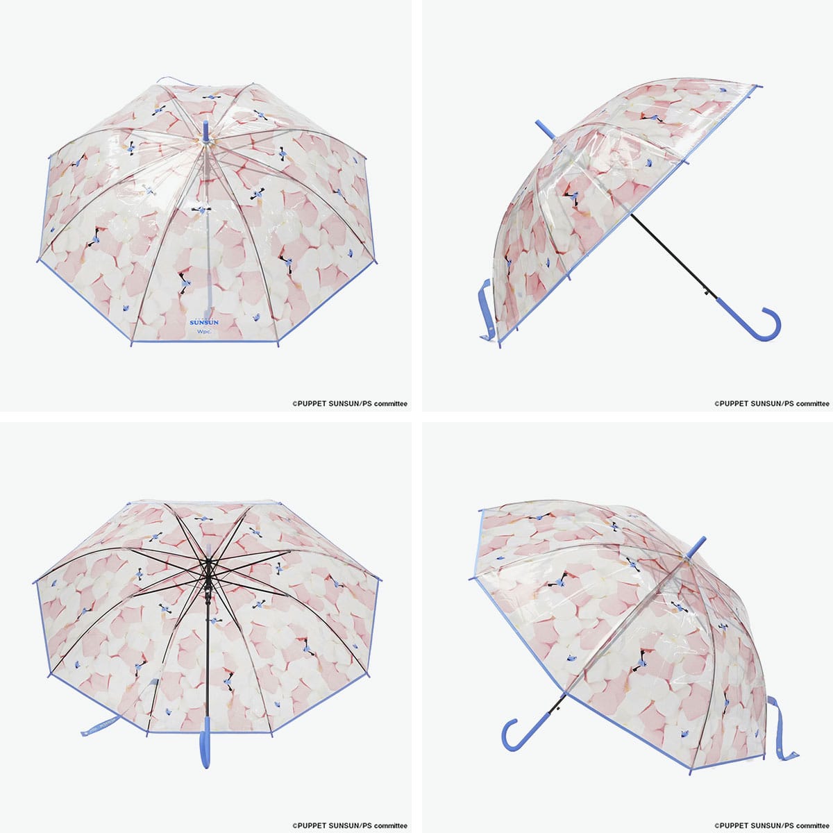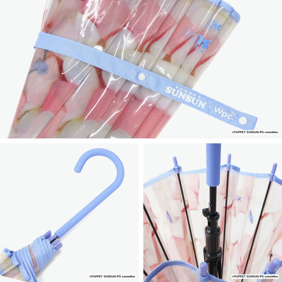 程よい透明感に、マシュマロの間から顔をのぞかせるスンスンがとっても愛らしいビニール傘。つゆ先やパイピング、手元は統一感のあるブルーで仕上げ、デザイン性を高めました。グラスファイバー骨を一部に使用し、軽くて折れにくい丈夫な設計。ワンタッチで開くジャンプ式で使い勝手も快適。愛着を持って大切に長く使っていただける、使い捨てにしないビニール傘です。