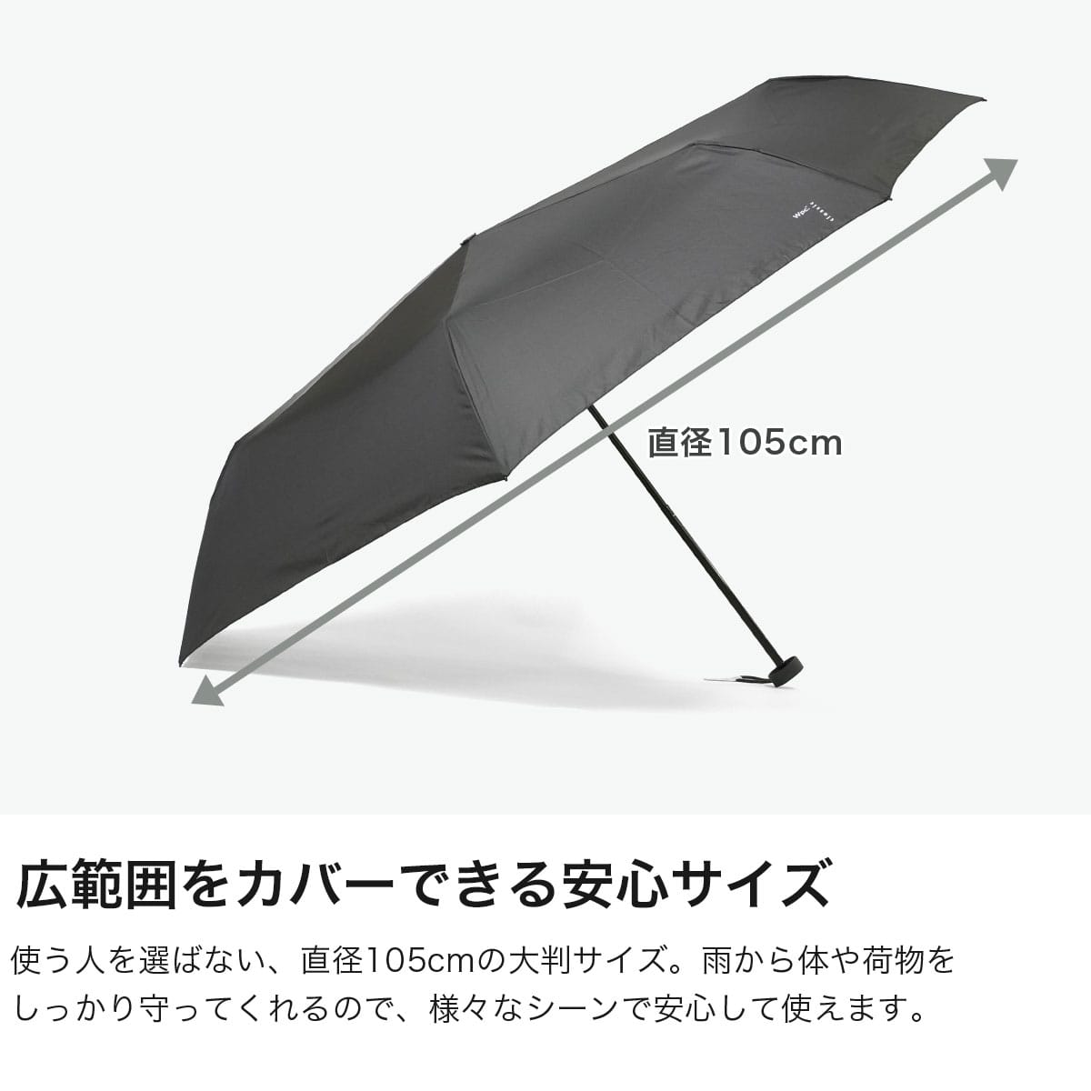 持つだけで印象があがる『Wpc. classic』の折りたたみ傘。直径105cmの大判サイズでありながら、軽量で使いやすさにこだわった「AIR-LIGHT」のアイテムです。研ぎ澄まされたデザインと機能で、洗練された大人を演出。紫外線防止効果があり全色90%以上のUVカット率で、日傘としても使える仕様になっています。上品なカラーとさりげないロゴが魅力で、様々なシーンに溶け込む一本です。