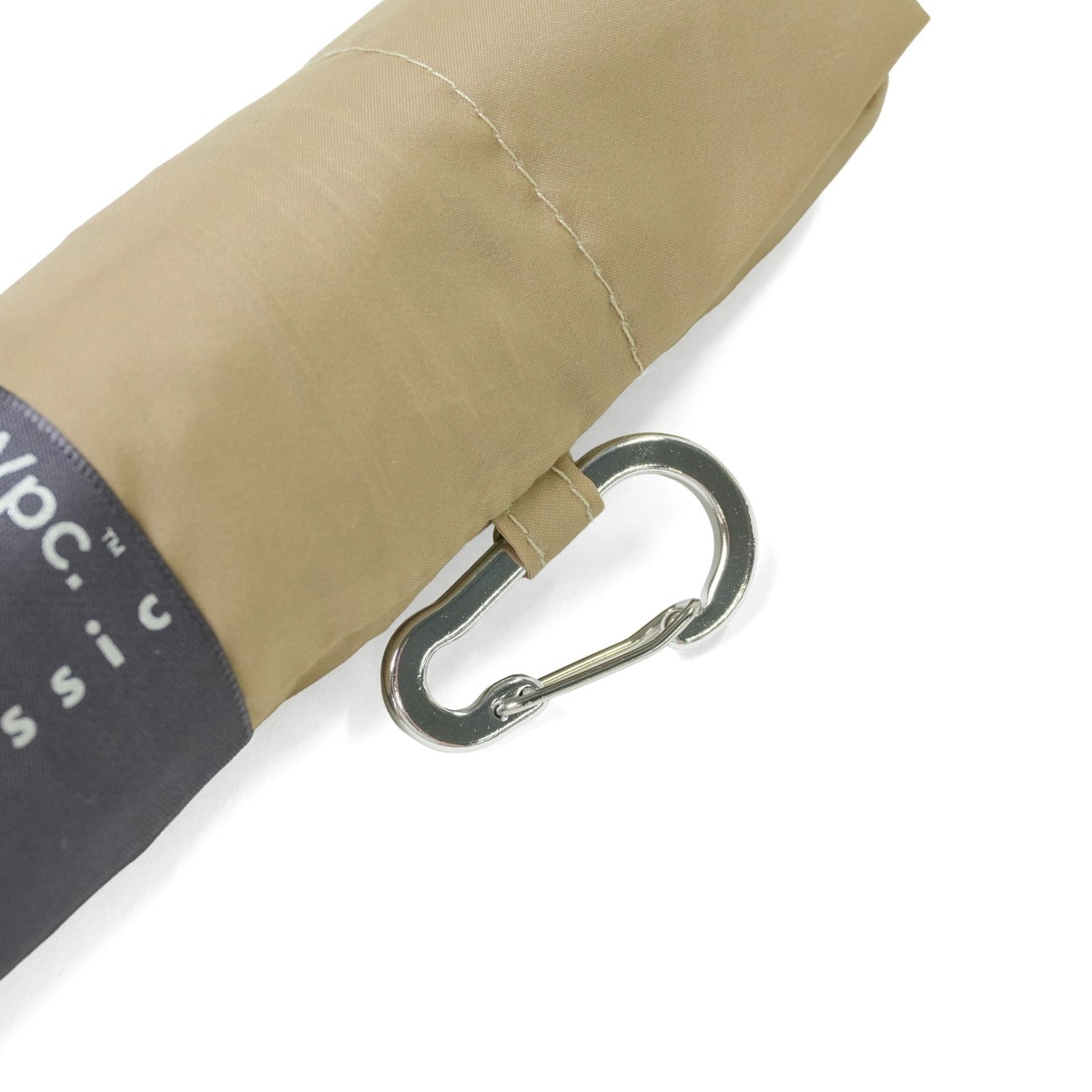 軽量×スリムの使いやすさにこだわった『Wpc. Classic』の晴雨兼用折りたたみ傘。釣り竿にも使われるカーボンファイバー素材を親骨に採用し、驚きの軽さと優れた強度を両立しました。スリムなフォルムで持ち運びしやすく、傘をさす際も負担になりにくい圧倒的な軽さがポイント。収納袋にはバッグに取り付け可能なカラビナ付きで、濡れた傘をバッグに入れるのに抵抗がある方や、傘をさしている間収納袋を分かりやすく保管したい方にもぴったり。細部まで気の利いたデザインです。
