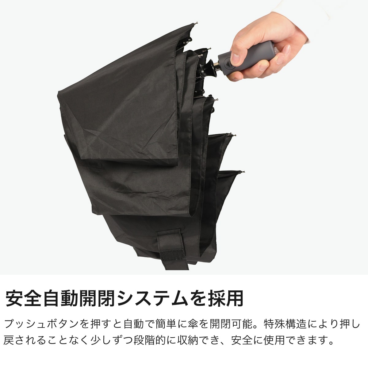 ワンタッチで簡単に操作できる「自動開閉」の晴雨兼用折りたたみ傘。荷物が多い日でも片手で操作でき、雨の日のストレス軽減に。直径106cmと大きめサイズで広範囲をカバーでき、男性や荷物の多い日も安心です。上品でシンプルなデザインなので、男女問わずお使いいただくことができ、普段のおでかけはもちろんのこと、ビジネスシーンやフォーマルシーンにもおすすめです。