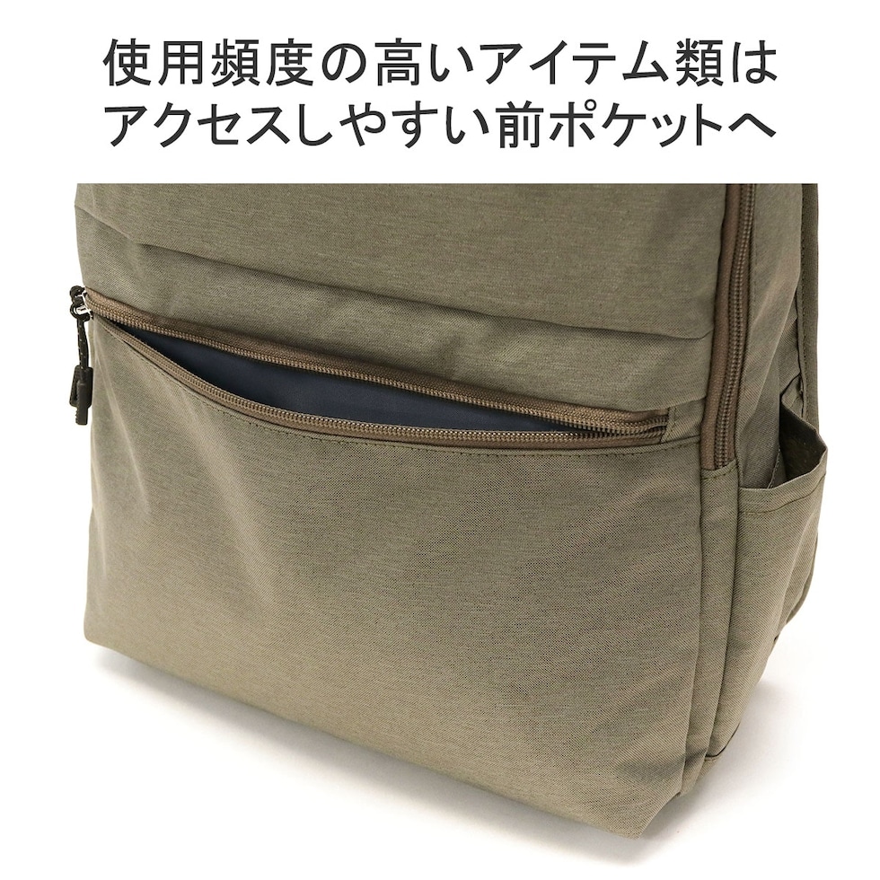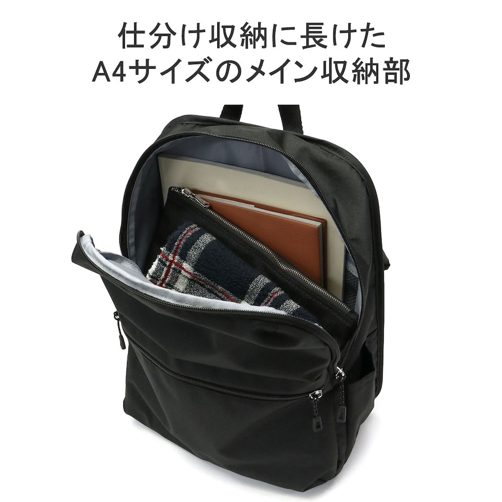 軽量でシンプルな形状の幅広いシーンに対応するユニセックスカジュアルトラベルシリーズ『デネブ』。こちらはA4サイズ対応リュックです。軽やかな背負い心地で、デイリーユースからアクティブに動くトラベルシーンにも最適。両サイドどちらからでも開閉出来、小物類をスムーズに出し入れできるファスナー付きフロントポケットや、小物雑貨を収納できる内装オーガナイザーポケットなど多彩な収納機能を備えつつ、すっきりとしたスリムなルックスが魅力です。