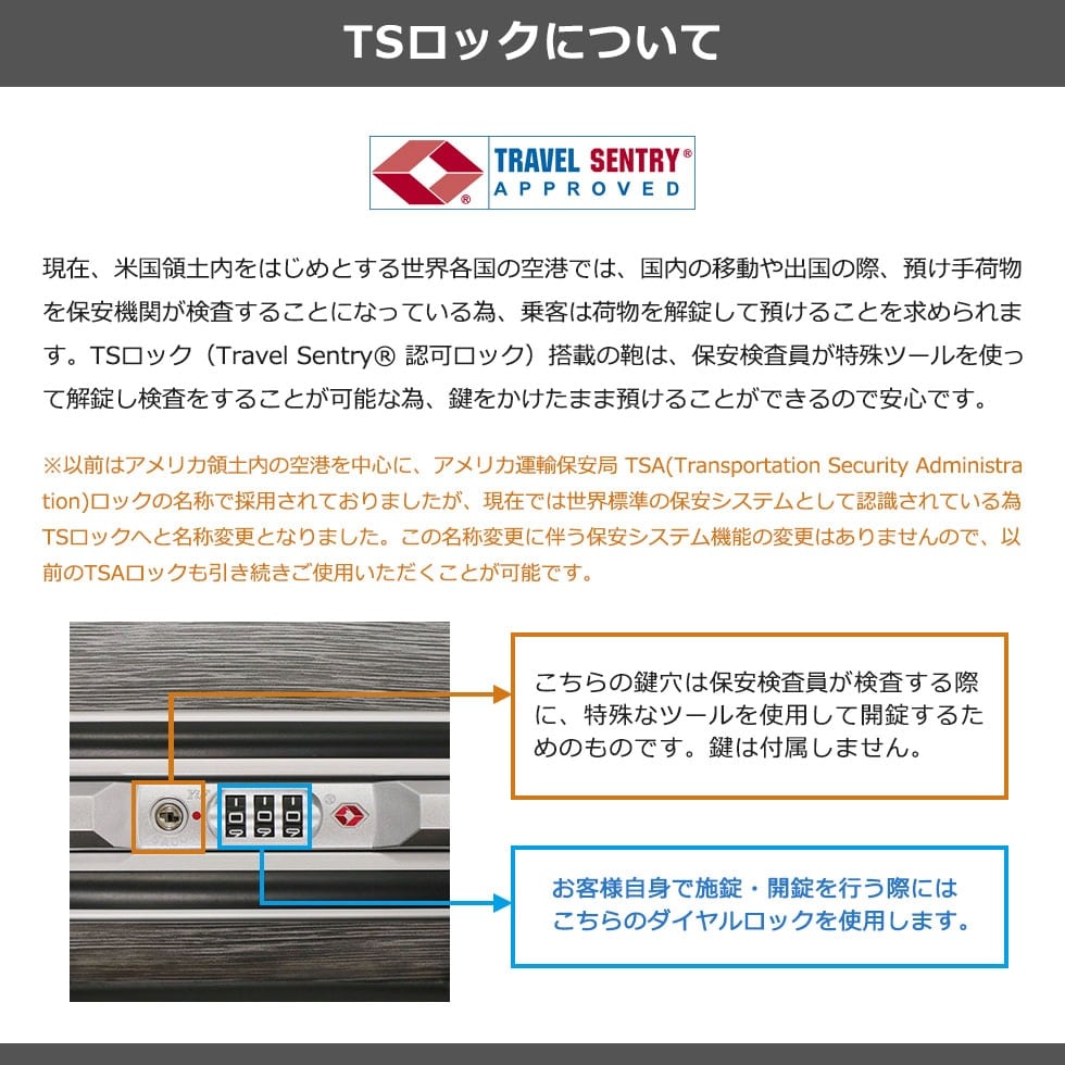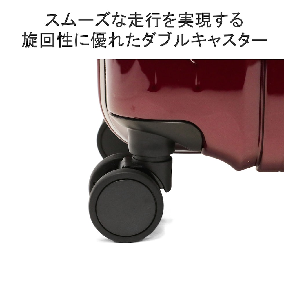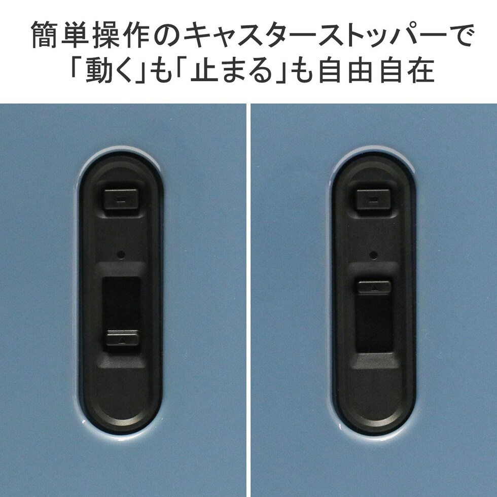 スタイリッシュなリブデザインが美しい『サグレス 2』の34L容量のスーツケース。便利なストッパー機能を搭載しており、背面にあるスイッチを操作するだけで簡単に切り替えが可能。電車やバス、坂道などの移動時に役立ちます。握りやすいハンドルは、手を離すと自動で元の位置に戻るオートリターン式を採用。スムーズに走行する大型の4輪キャスターで、旅先への移動を快適にサポートします。