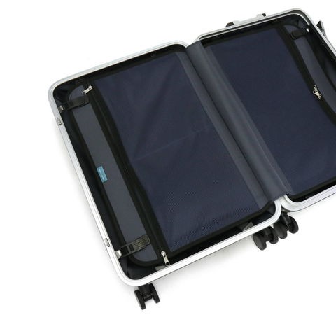 収納部の両側にはクロスベルトを搭載しており、収納スペースを確保しつつ荷崩れをしっかりと防止します。ファスナーポケット付きの大きな仕切りが両面に備わっているため、小物の収納に役立つほか、開閉時に目隠しとなるところもポイント。開閉部は頑丈なフレームタイプのため、型崩れしてほしくないスーツや、壊れやすいアイテムを持ち運ぶ際も安心です。