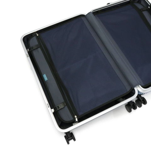 収納部の両側にはクロスベルトを搭載しており、収納スペースを確保しつつ荷崩れをしっかりと防止します。ファスナーポケット付きの大きな仕切りが両面に備わっているため、小物の収納に役立つほか、開閉時に目隠しとなるところもポイント。開閉部は頑丈なフレームタイプのため、型崩れしてほしくないスーツや、壊れやすいアイテムを持ち運ぶ際も安心です。