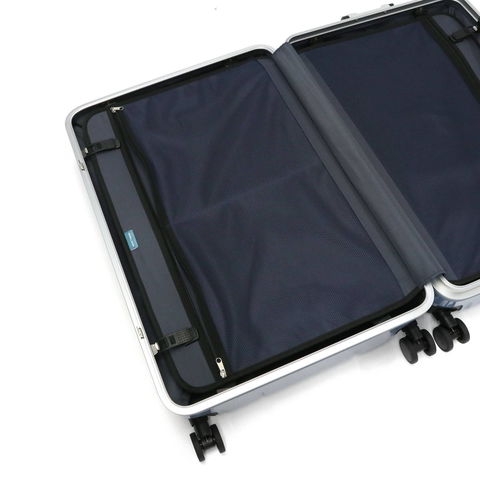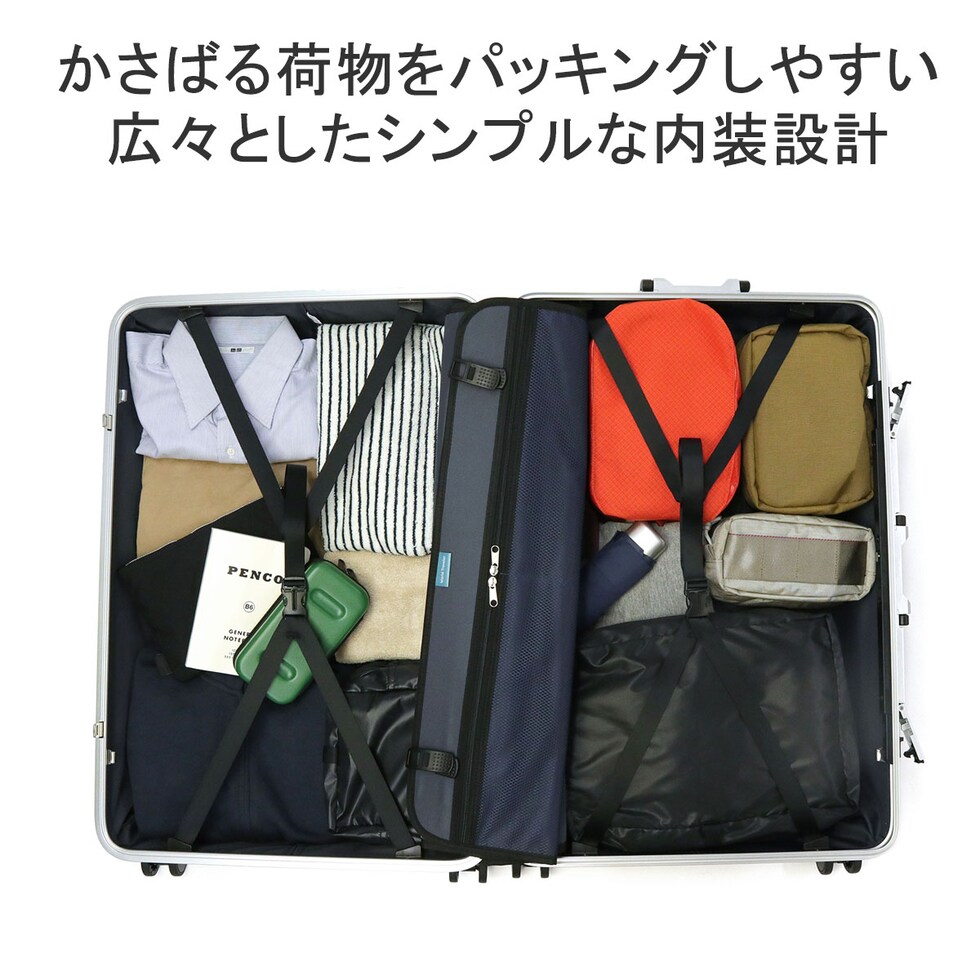 収納部の両側にはクロスベルトを搭載しており、収納スペースを確保しつつ荷崩れをしっかりと防止します。ファスナーポケット付きの大きな仕切りが両面に備わっているため、小物の収納に役立つほか、開閉時に目隠しとなるところもポイント。開閉部は頑丈なフレームタイプのため、型崩れしてほしくないスーツや、壊れやすいアイテムを持ち運ぶ際も安心です。