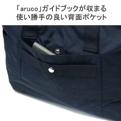 本体には汚れが目立ちにくいワッシャー加工生地を採用し、旅先でもラフに使える仕様が嬉しいポイントです。また、充実したポケットも魅力の一つ。外側背面には「aruco」がちょうど入るサイズのポケットを装備し、いつでもサッと取り出せます。フロントポケットには、ペン差しやキーフック、ホテルのカードキーを差し込めるポケットなどを搭載し、小物類を綺麗に収納できます。さらにスーツケースセットアップ機能も備え、旅を快適にする工夫が満載です。