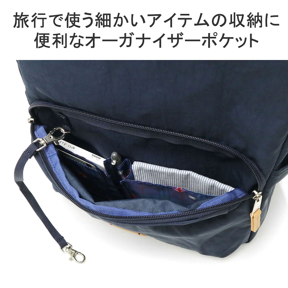 詳細説明 本体には汚れが目立ちにくいワッシャー加工生地を採用し、旅先でもラフに使える仕様が嬉しいポイントです。また、充実したポケットも魅力の一つ。外側背面には「aruco」がちょうど入るサイズのポケットを装備し、いつでもサッと取り出せます。フロントポケットには、ペン差しやキーフック、ホテルのカードキーを差し込めるポケットなどを搭載し、小物類を綺麗に収納できます。さらにスーツケースセットアップ機能も備え、旅を快適にする工夫が満載です。