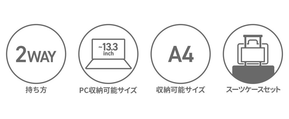 ・対応PCサイズは目安です。同じインチ数でも製品によってサイズが異なるため、対応できない場合もございますので、予めご確認の上お求めください。