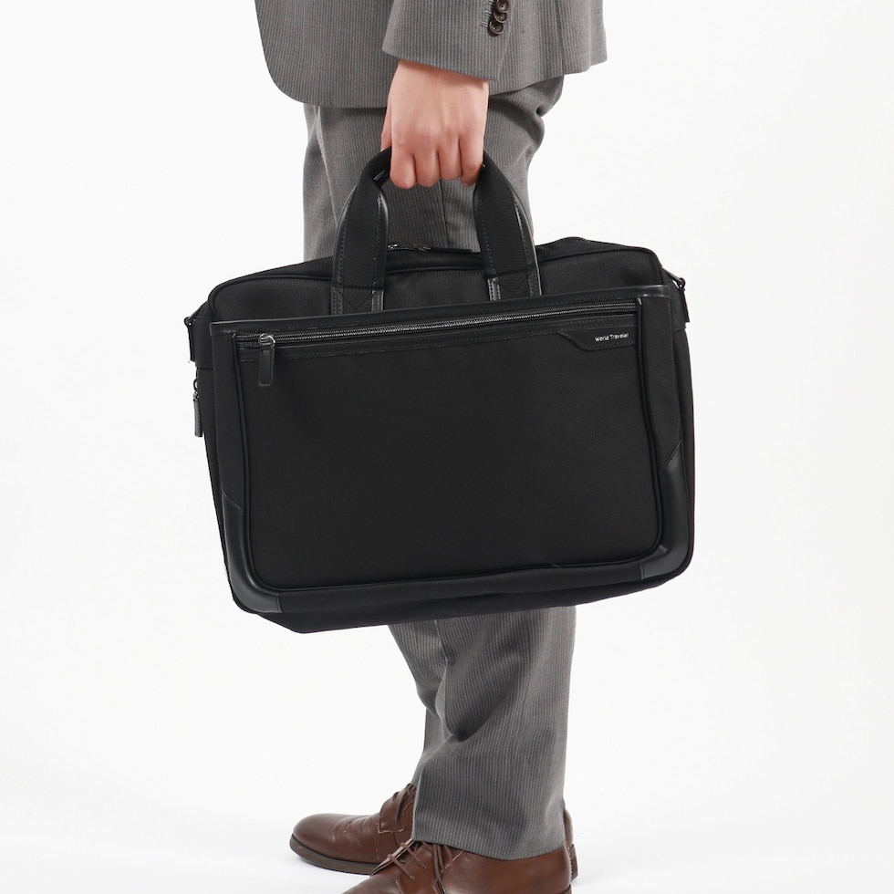 高い機能性とファッション性を提供するブランド『World Traveler』から登場した、B4サイズの2WAYブリーフケース。PC収納付きのメインルームには、マチが拡張する「エキスパンダブル機能」を搭載。外出先などで急に荷物が増えた際に役立ちます。使いやすさはもちろん、ビジネスシーンに馴染む洗練されたデザインも魅力です。