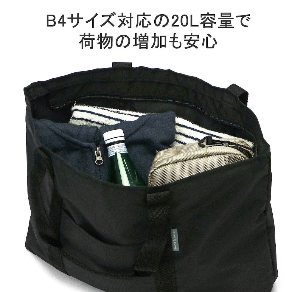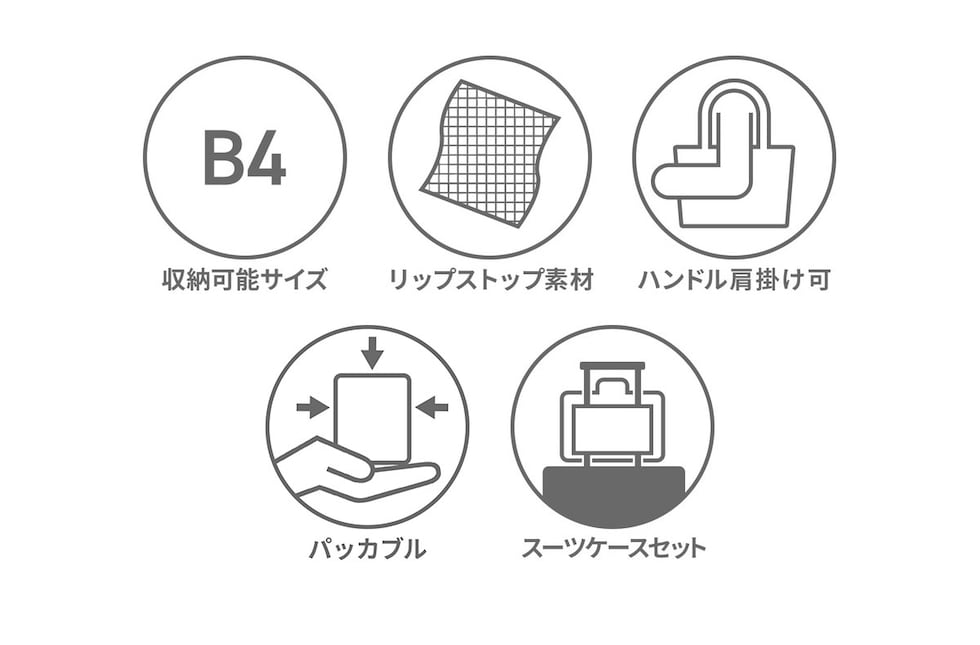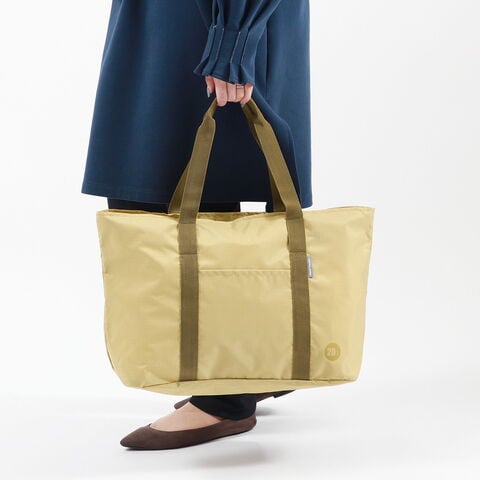 旅先での急な荷物の増加に対応できるパッカブル仕様の『タイヴァス』シリーズのトートバッグ。本体を折りたたみ、付属のポーチに収納することでコンパクトに持ち運びが可能です。シンプルなデザインながら、使いやすく便利なポイントを押さえたトラベルシーンや普段使いにもピッタリなアイテムとなっています。