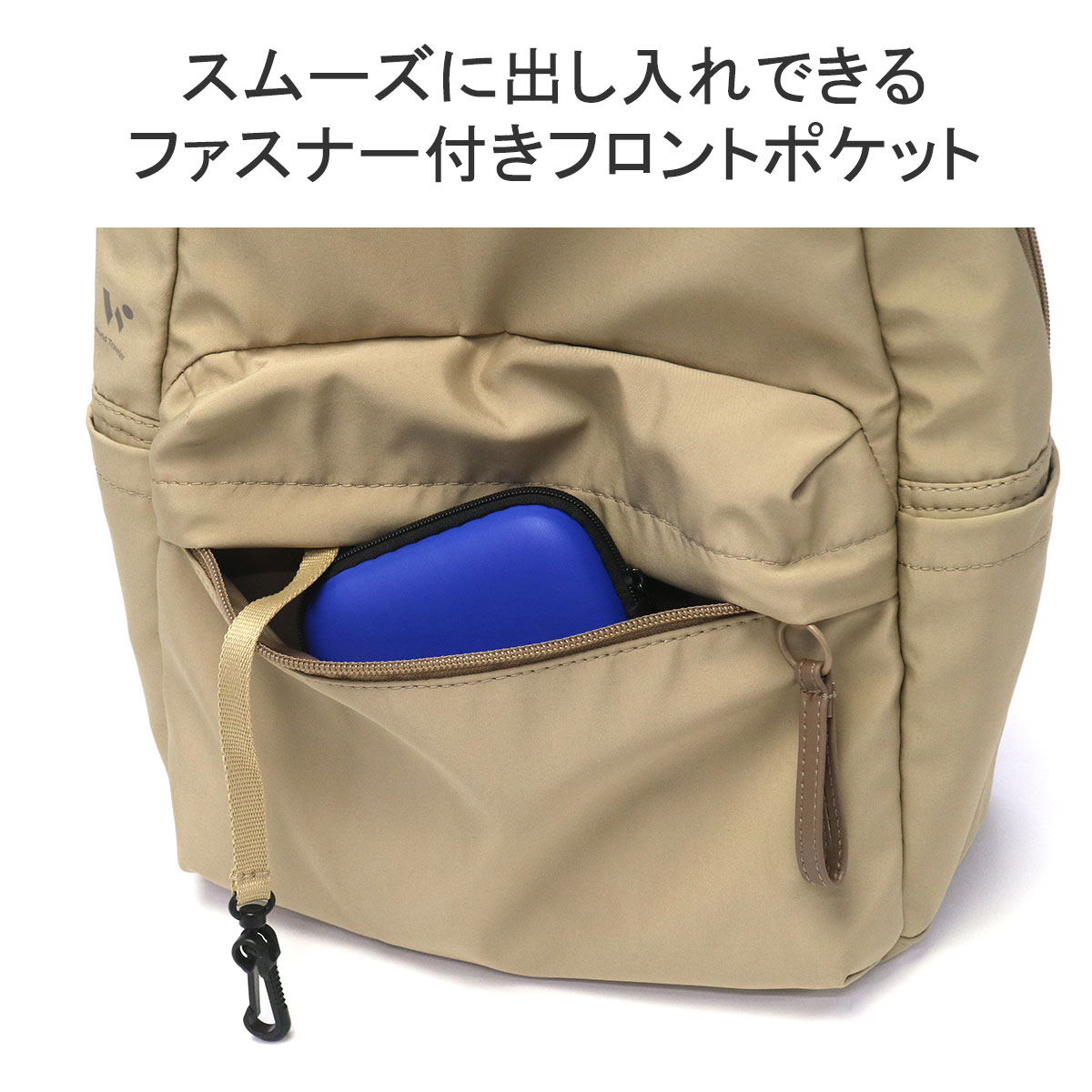 幅広い年齢層やシーンに対応するユニセックスカジュアルシリーズ『ミラ』のリュック。メイン収納部には、折り畳み傘やペットボトル収納に便利なホルダーを完備。外側にはキーフック付きの大きめのジップポケットが付いており、小物の管理も楽々。シンプルでコンパクトながら充実の機能で、旅行から普段使いまで使いやすい仕様です。