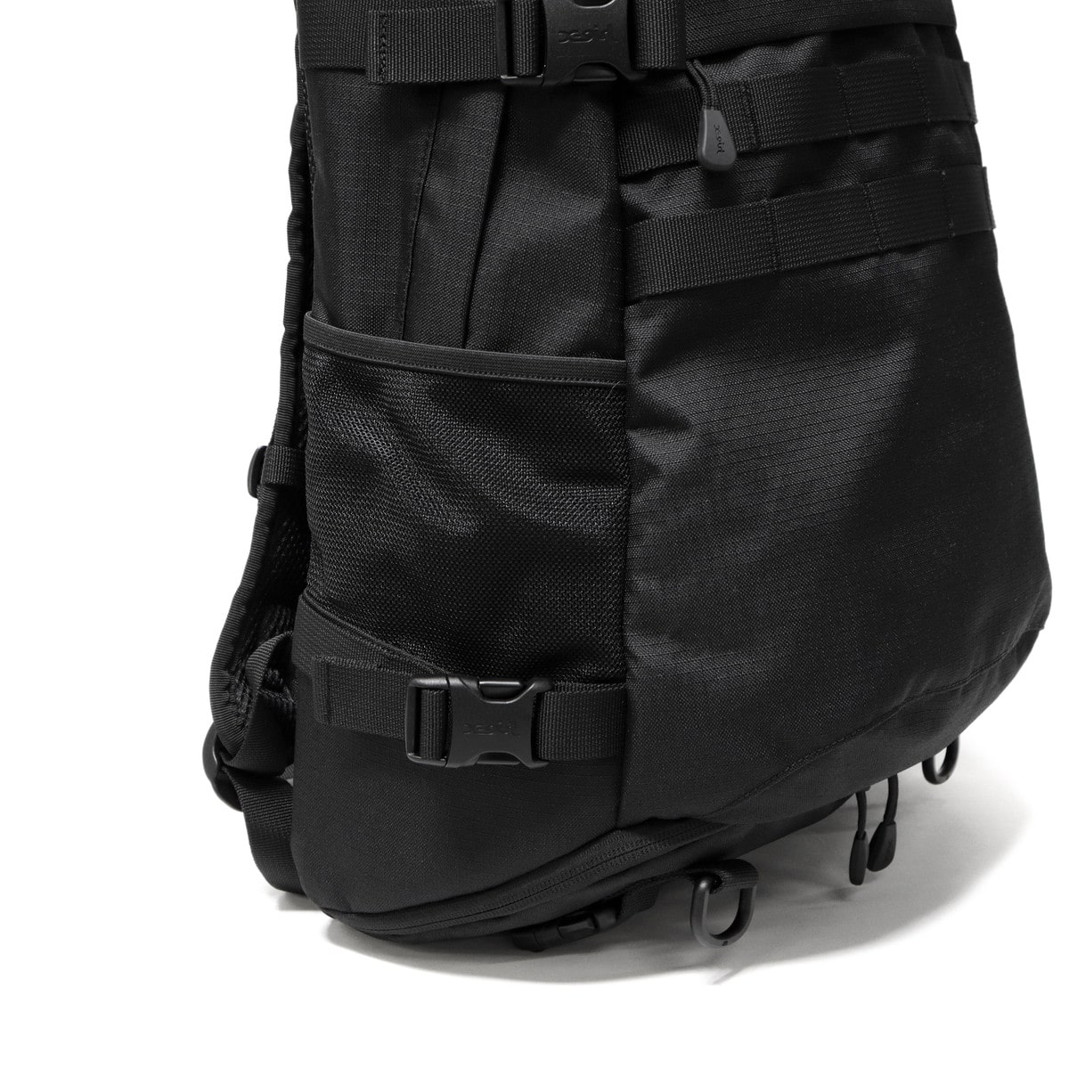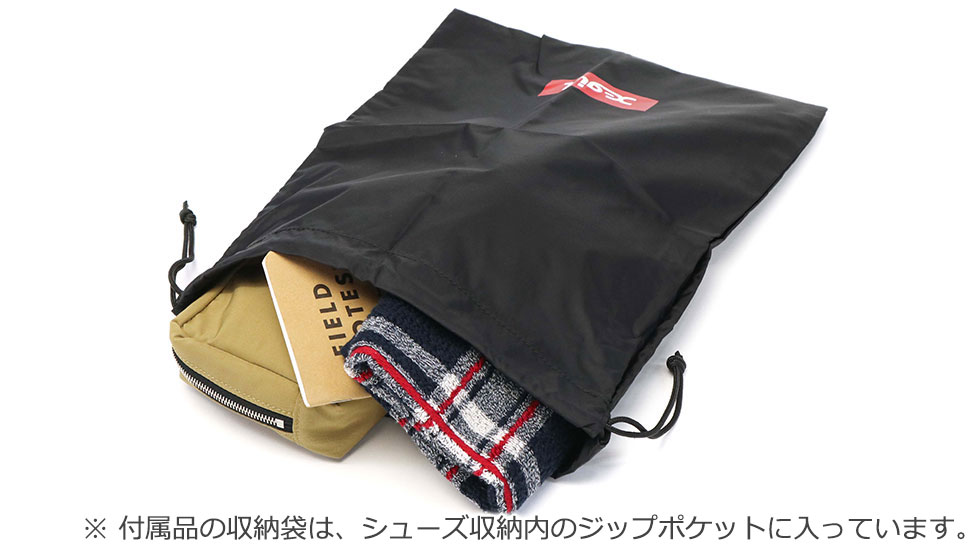 仕様 |[外側] ・シューズ収納×1[メッシュポケット(M)×1 内蔵] ・ジップポケット(L)×1 ・メッシュポケット(S)×2 [内側] ・PC収納×1 ・ポケット(S)×1 ・ポケット(XS)×2 ・ペンホルダー×1 [付属品] ・収納袋×1