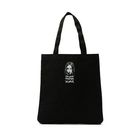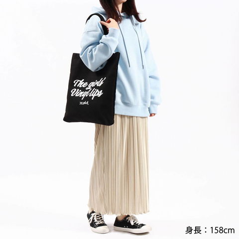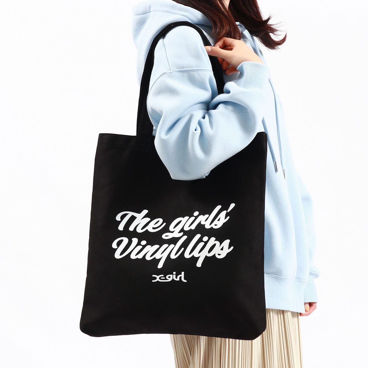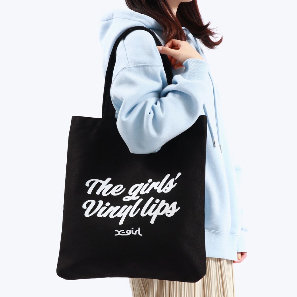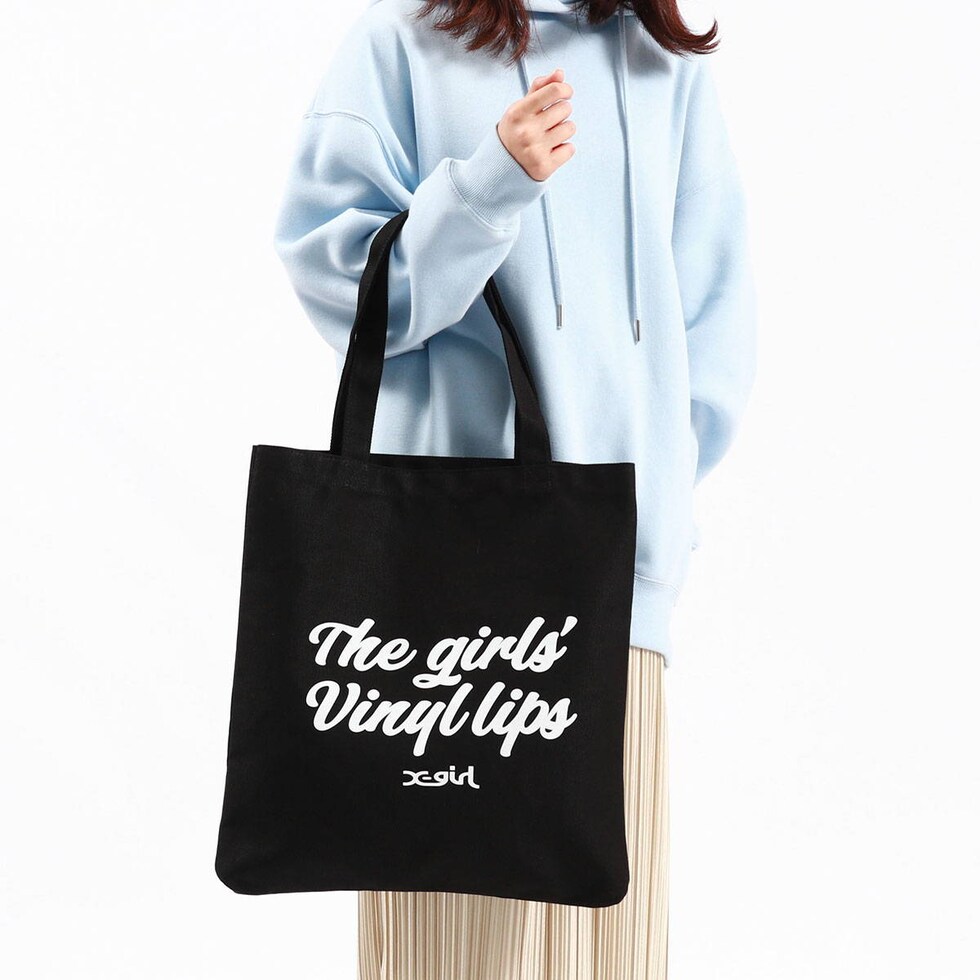 エックスガール トートバッグ X-girl VINYL LIP FACE CANVAS TOTE BAG トート 持ち手 肩掛け 縦型 帆布 紐 長め バッグ A4 B4 大きめ 軽量 綿 コットン プリント キャンバス レディース 105232053005