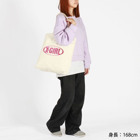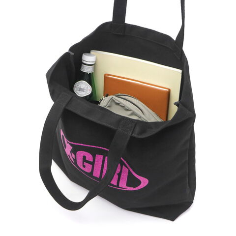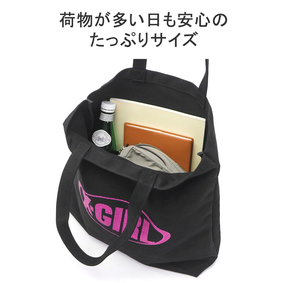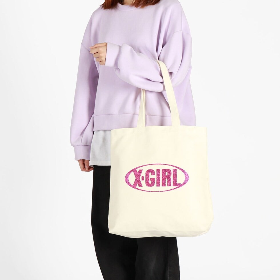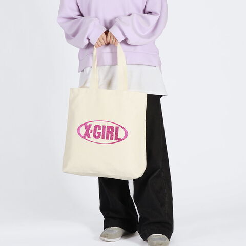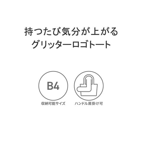 キラキラグリッターがコーディネートに映える、ロゴデザインのキャンバストートバッグ。B4がちょうど収まる大きめサイズで、通勤通学などのデイリーユースから休日のお出掛けまで様々なシーンで重宝します。