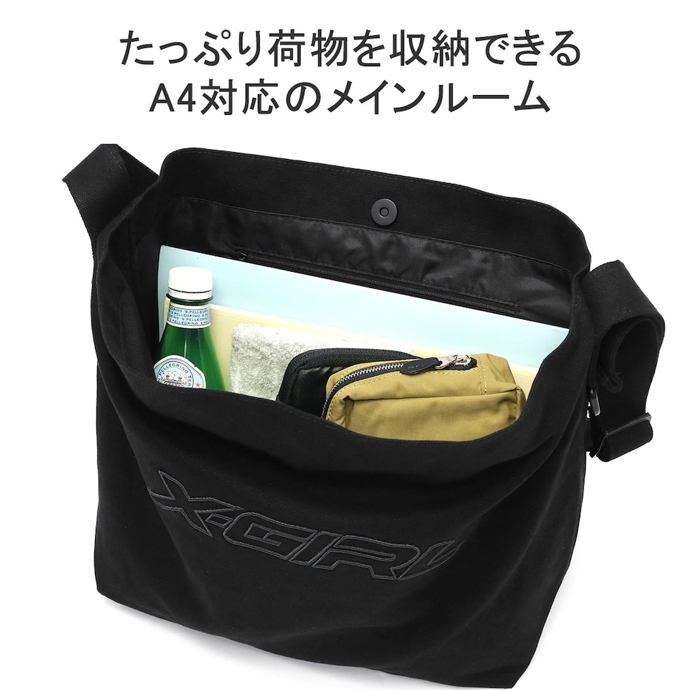 エックスガール ショルダーバッグ レディース 斜めがけバッグ ブランド X-girl ショルダー バッグ 軽量 軽い 大きめ かわいい カジュアル おしゃれ A4 綿 通勤 通学 旅行 LOGO MESSENGER BAG 105243053003