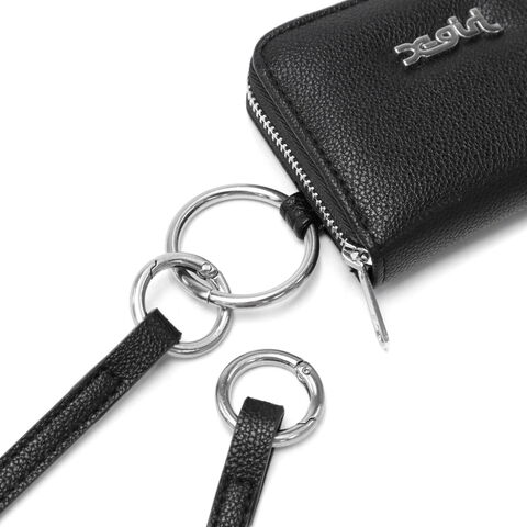旅行や野外フェスなどに活躍するコイン&カードケース。SILVERはシボありフェイクレザーにシルバーのメタルネームとファスナーを、GOLDは加工感のあるフェイクレザーにゴールドのメタルネームとファスナーをデザインしています。また着脱可能なストラップは長さ調整ができるため、シーンに応じて持ち運び方を使い分けられます。