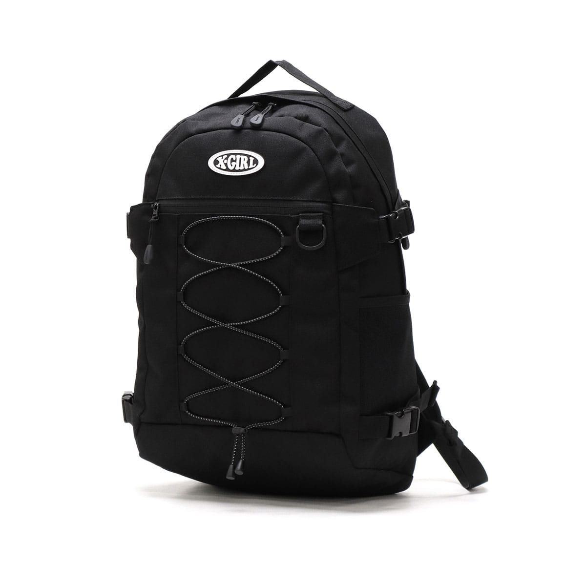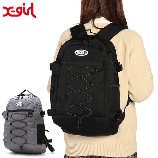 - > エックスガール リュック レディース リュックサック 大容量 通学 通勤 旅行 X-girl バッグ 軽量 軽い おしゃれ PC収納 16インチ 16inch A4 B4 30L OVAL LOGO BUNGEE CORD BACKPACK 105251053006