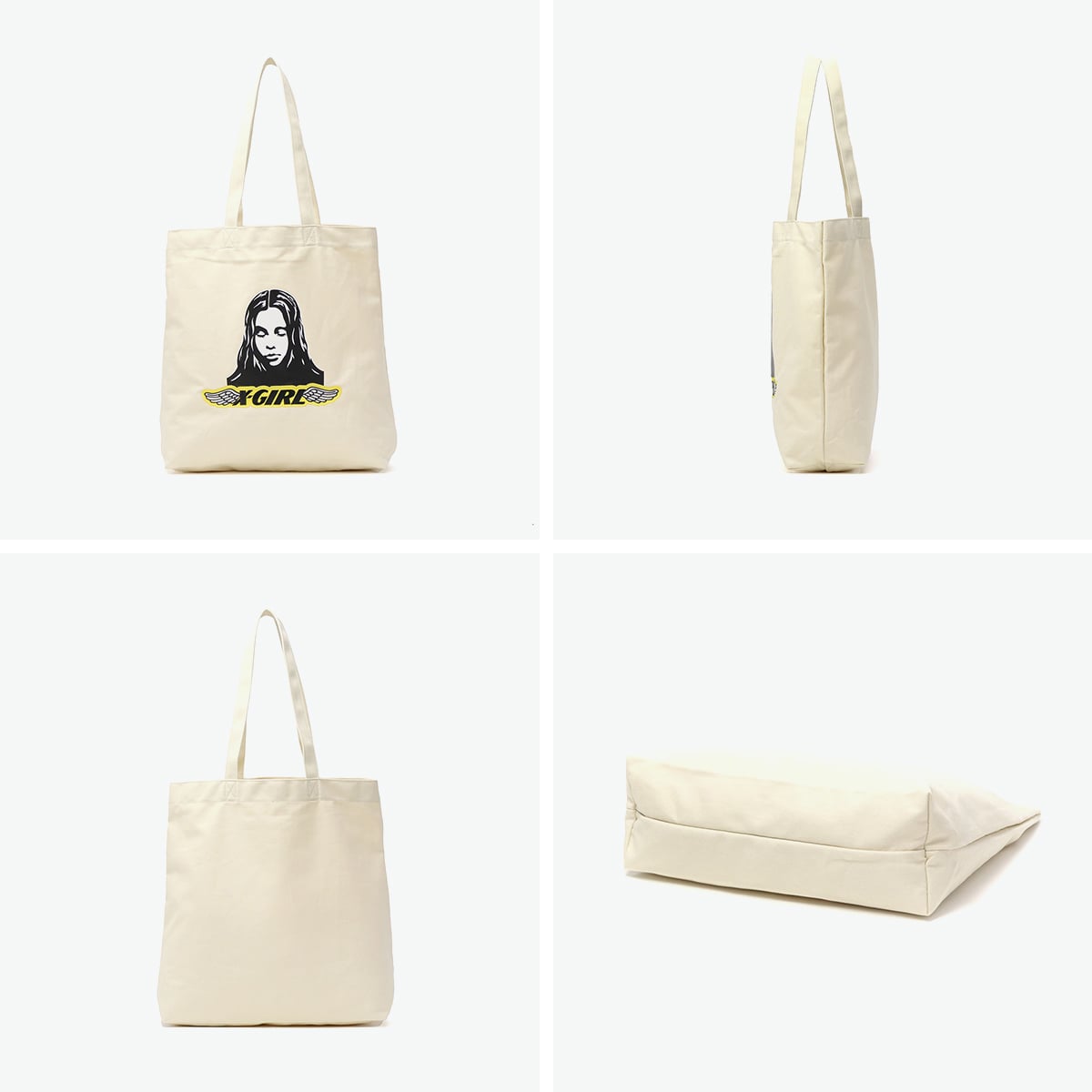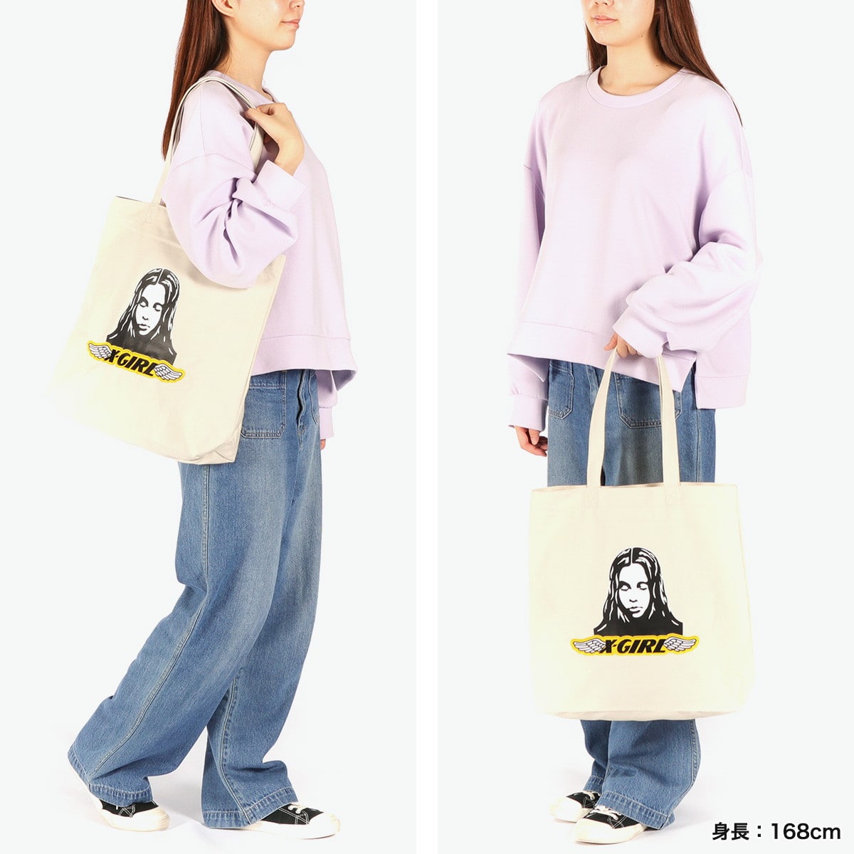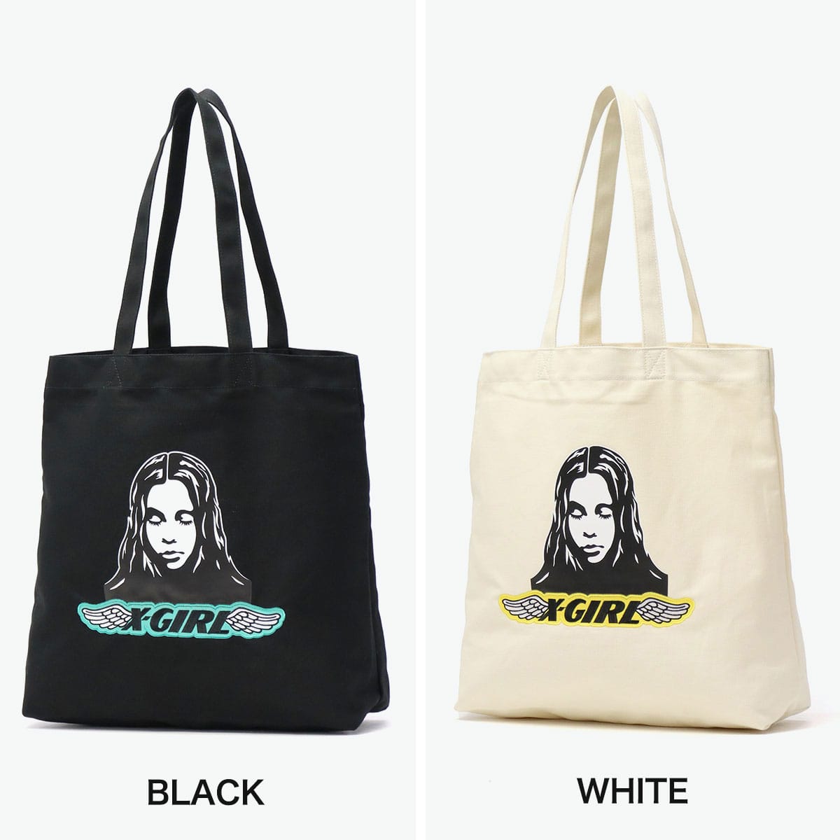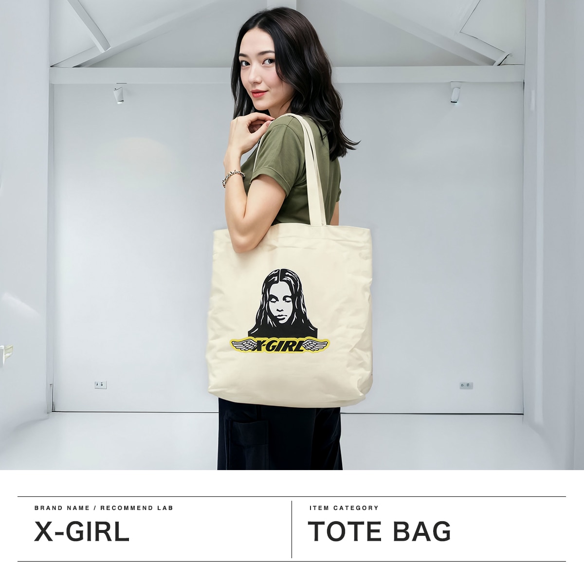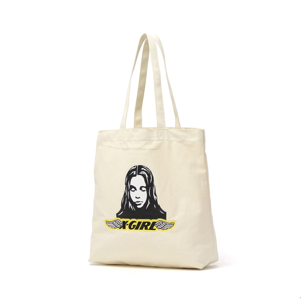 エックスガール トートバッグ レディース A4 大きめ キャンバス X-girl バッグ 軽量 軽い 通学 通勤 普段 ブランド ロゴ 無地 肩掛け カジュアル かわいい おしゃれ キャンバストート ANGEL FACE PATCH TOTE BAG 105252053002
