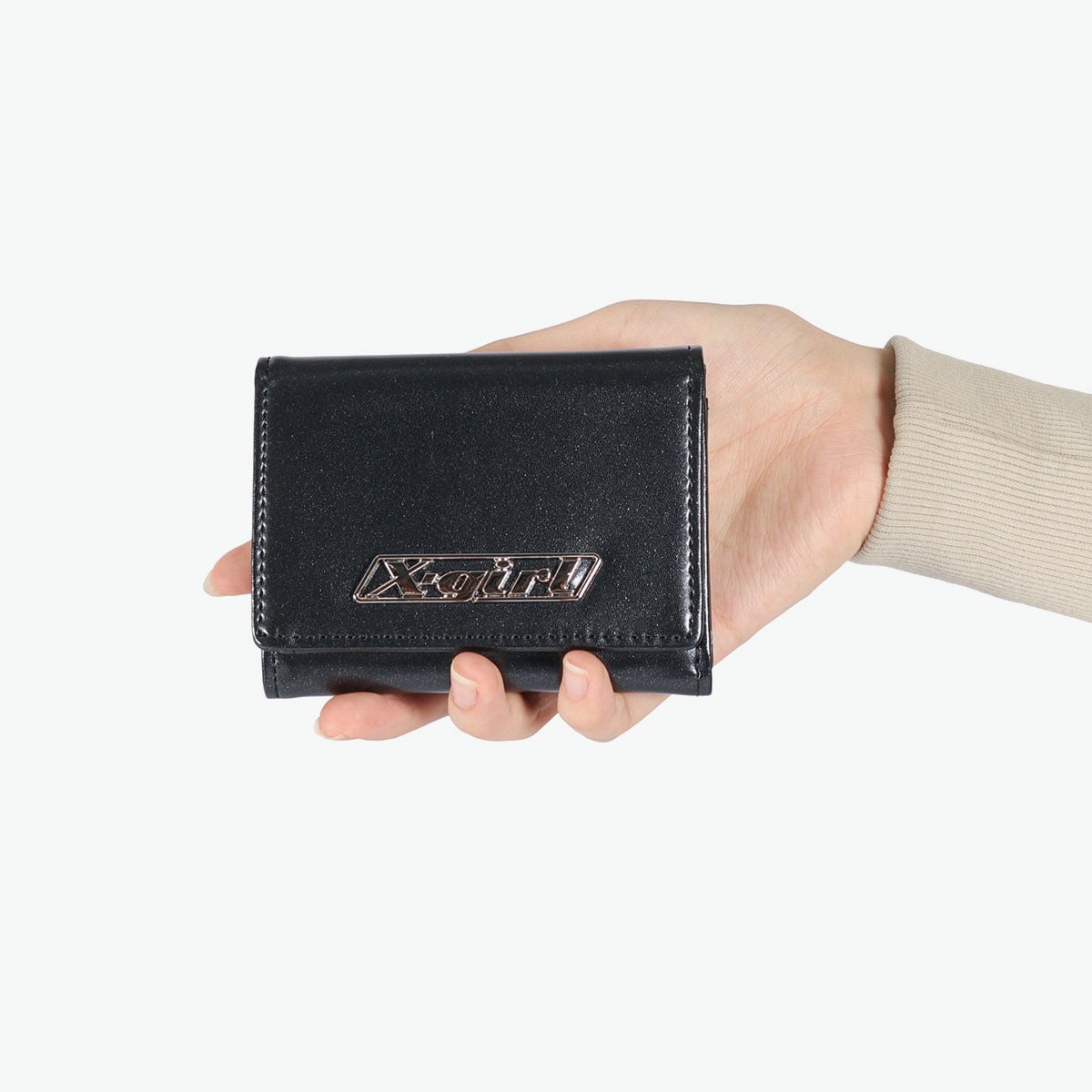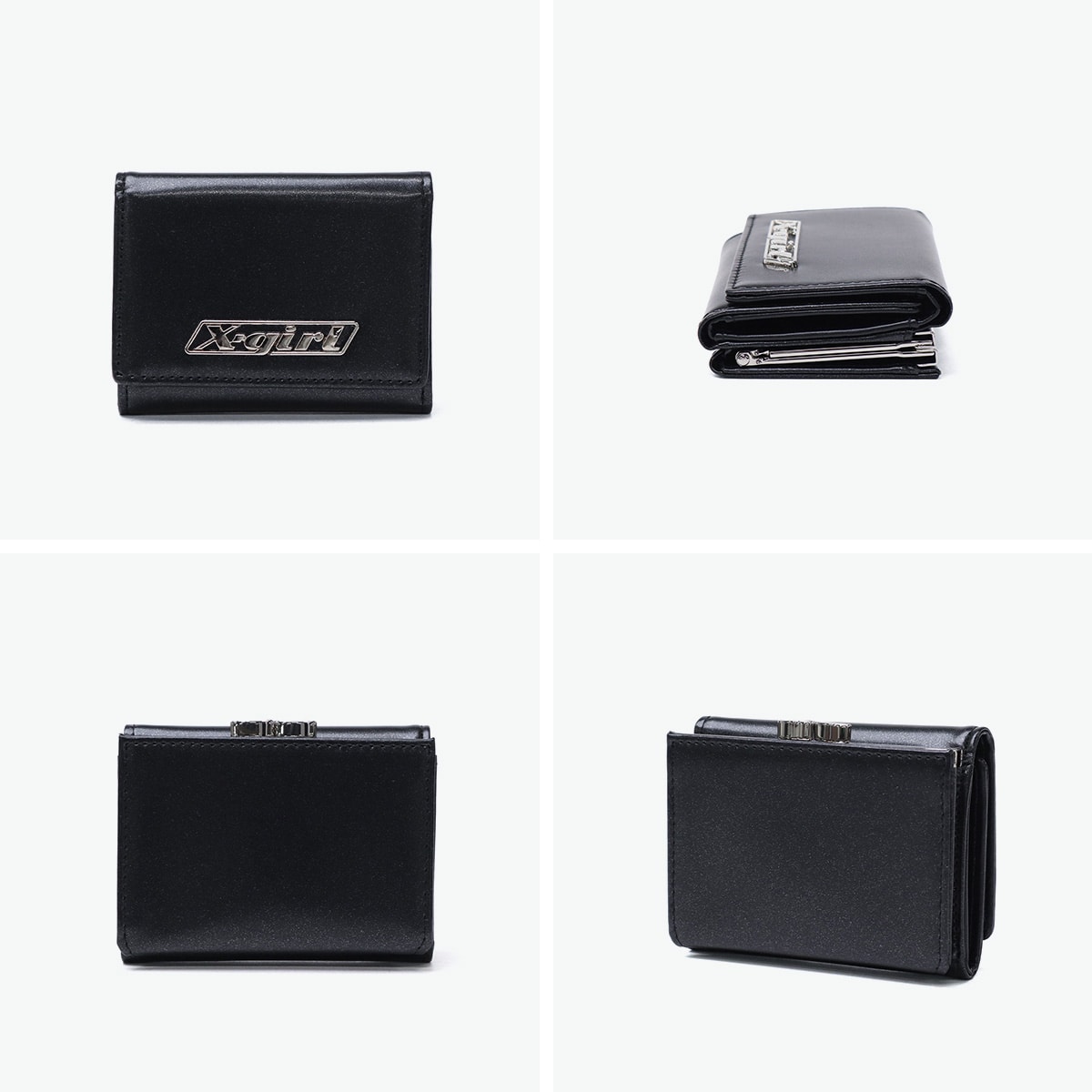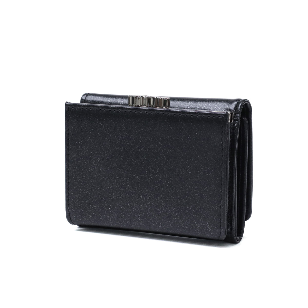 メタリックなブランドロゴが目を引く三つ折りタイプのミニウォレット。細かなラメが輝くフェイクレザー素材で、上品な印象に仕上げています。コンパクトサイズでありながら、がま口で開けやすいコインポケットや充実したカードポケットなどの機能性も◎。新生活やプレゼントにもおすすめなアイテムです。