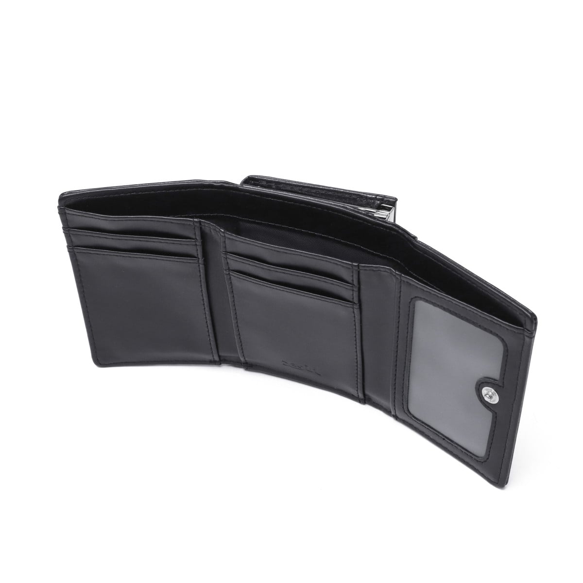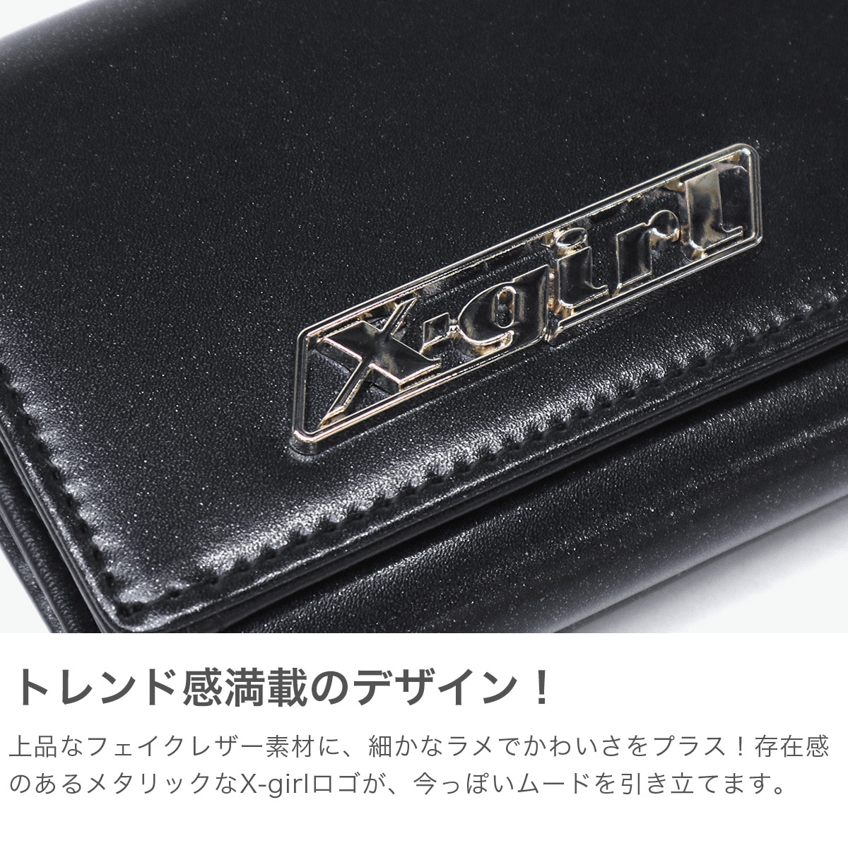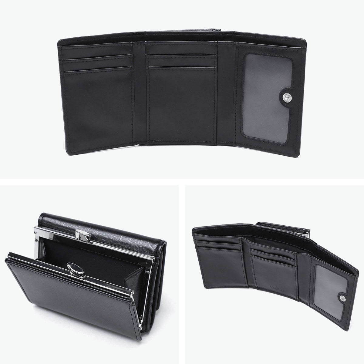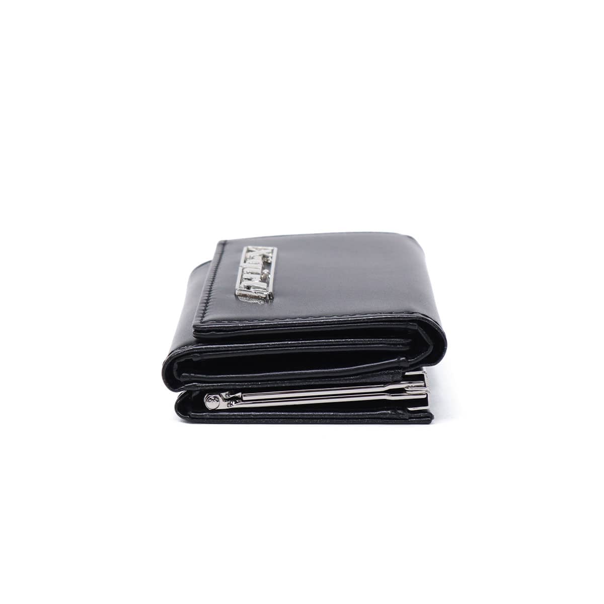 メタリックなブランドロゴが目を引く三つ折りタイプのミニウォレット。細かなラメが輝くフェイクレザー素材で、上品な印象に仕上げています。コンパクトサイズでありながら、がま口で開けやすいコインポケットや充実したカードポケットなどの機能性も◎。新生活やプレゼントにもおすすめなアイテムです。