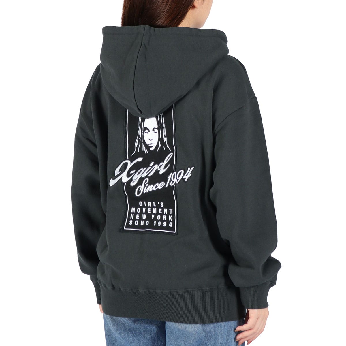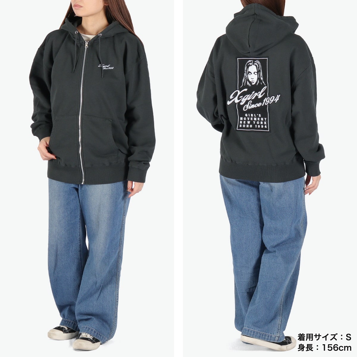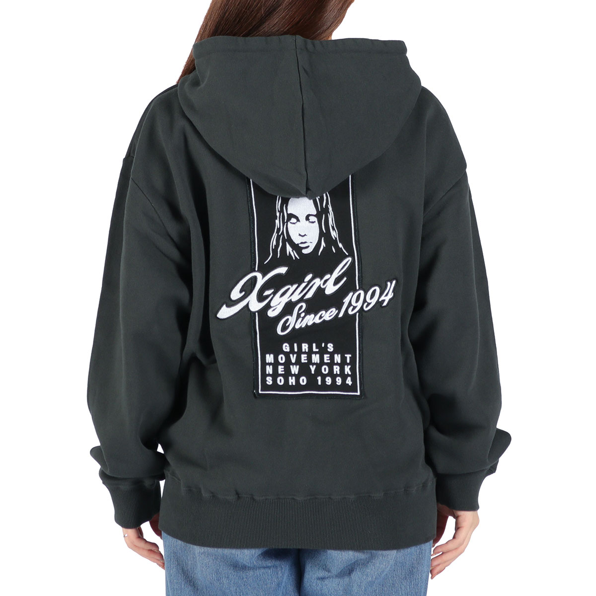 エックスガール パーカー レディース ジップ薄手 X-girl 秋 冬 大きめ おしゃれ ブランド ジップアップ スウェットパーカ 綿 フーディー ストリート トップス FACE BOX PATCH ZIP UP SWEAT HOODIE 105253012005