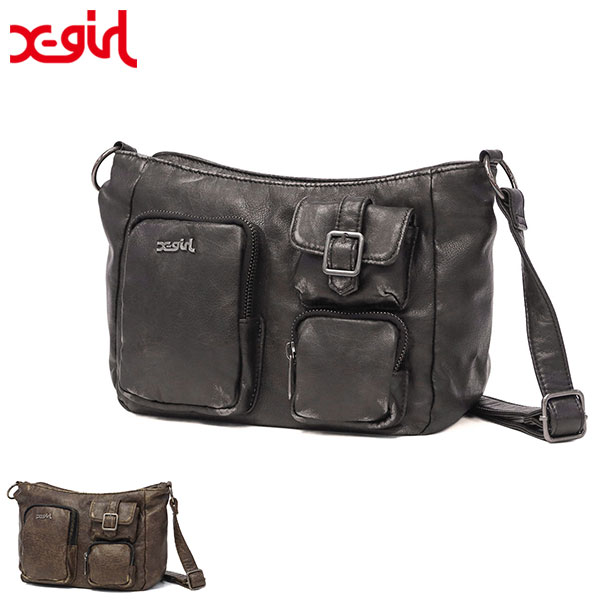 X-girl エックスガール ショルダーバッグ フェイクレザー MULTI POCKET FADED FAUX LEATHER BAG 105254053001