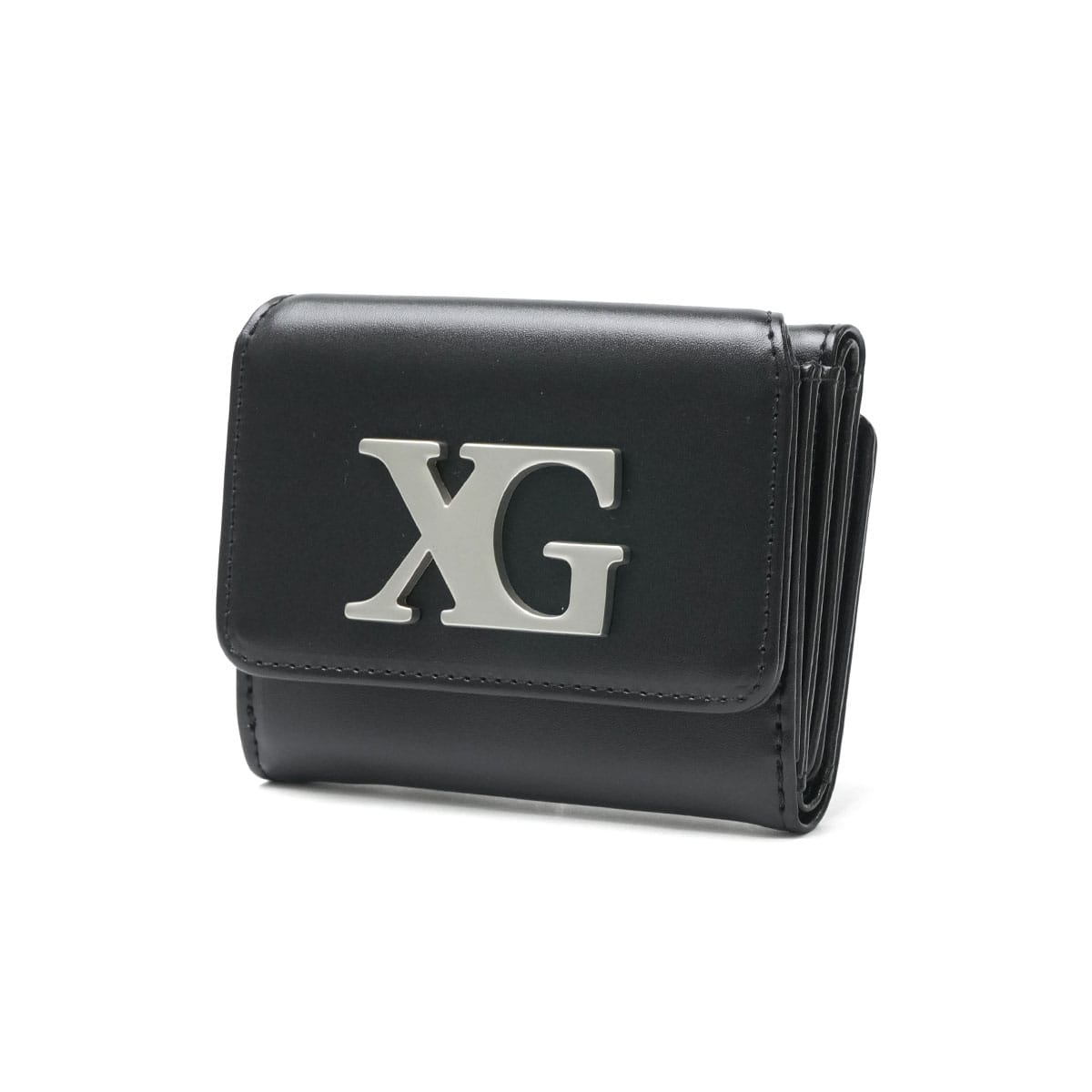 XGのメタルロゴが映える三つ折り財布。上品なフェイクレザーの質感に、メタリックなロゴがアクセントになり、バランスの取れた仕上がりに。コンパクトなフォルムに、小銭入れやカードポケットをしっかり備え、使いやすさにもこだわったアイテムです。