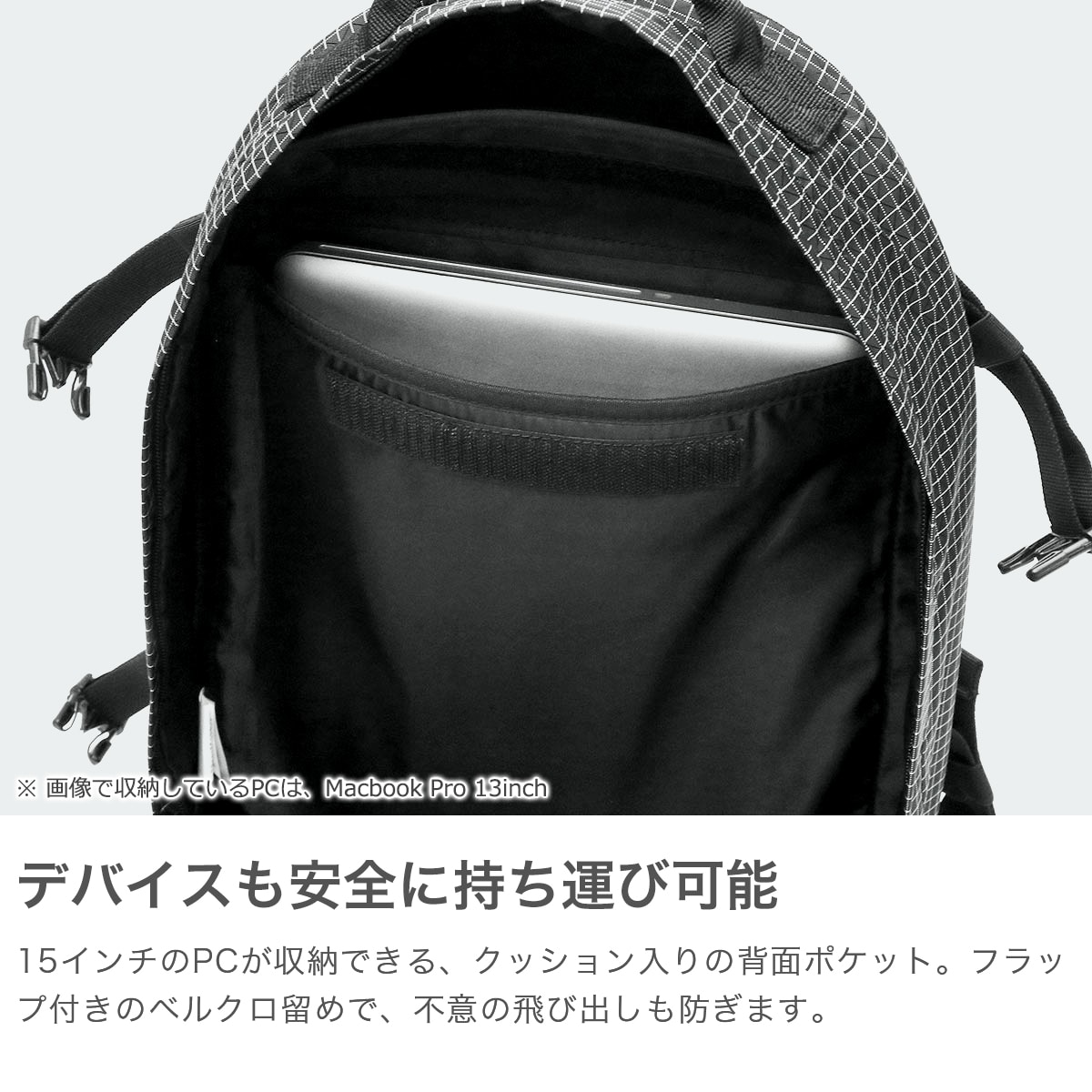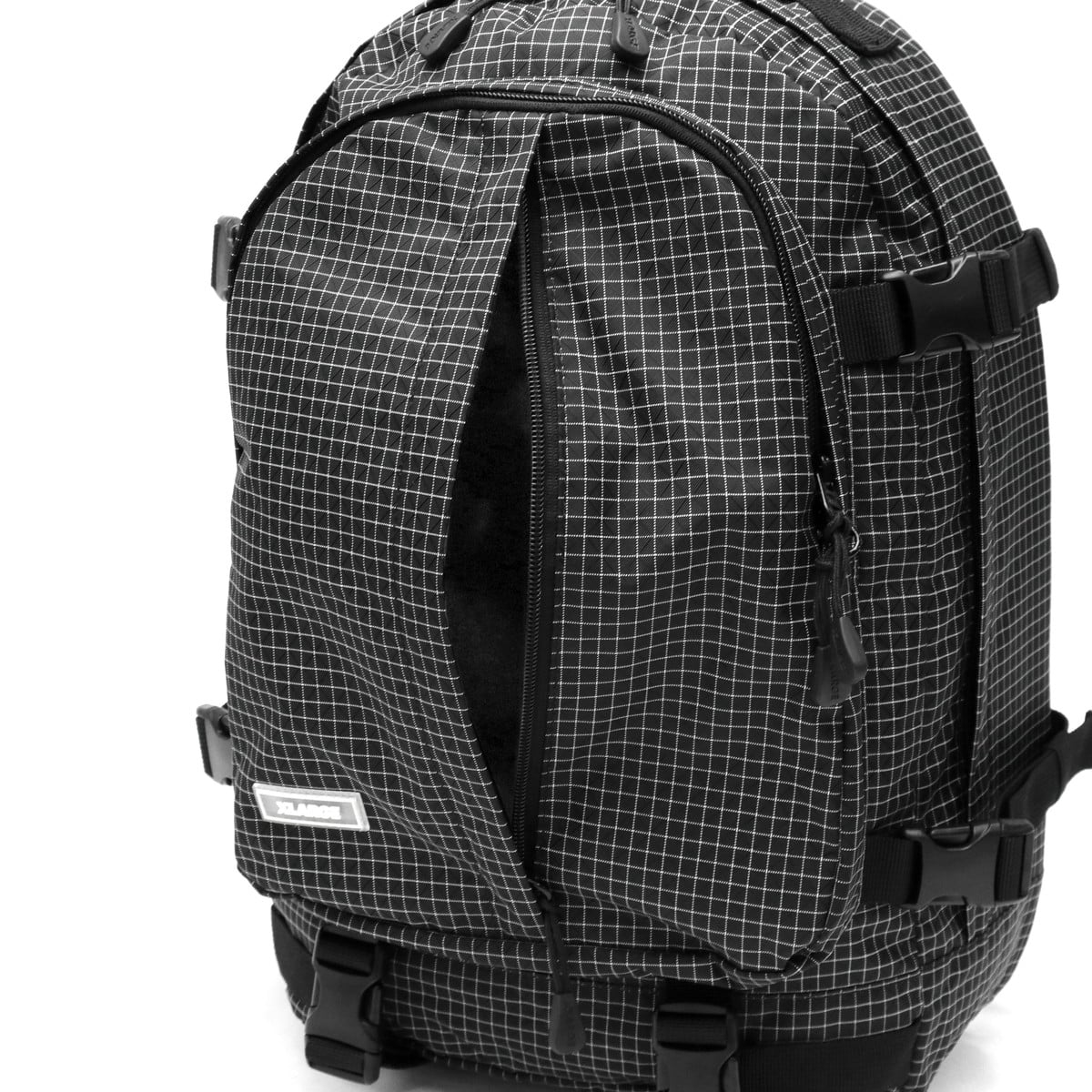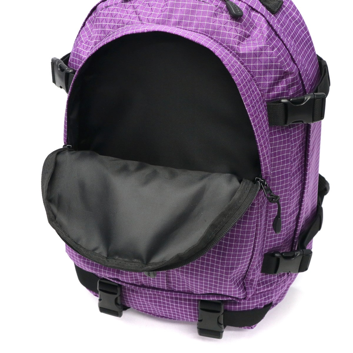 軽さと強度が魅力のリップストップ素材を使用したリュックサック。コンパクトなサイズ感で、デイリー使いから通学などにもピッタリです。ラバー素材のロゴデザインもポイントとなっています。