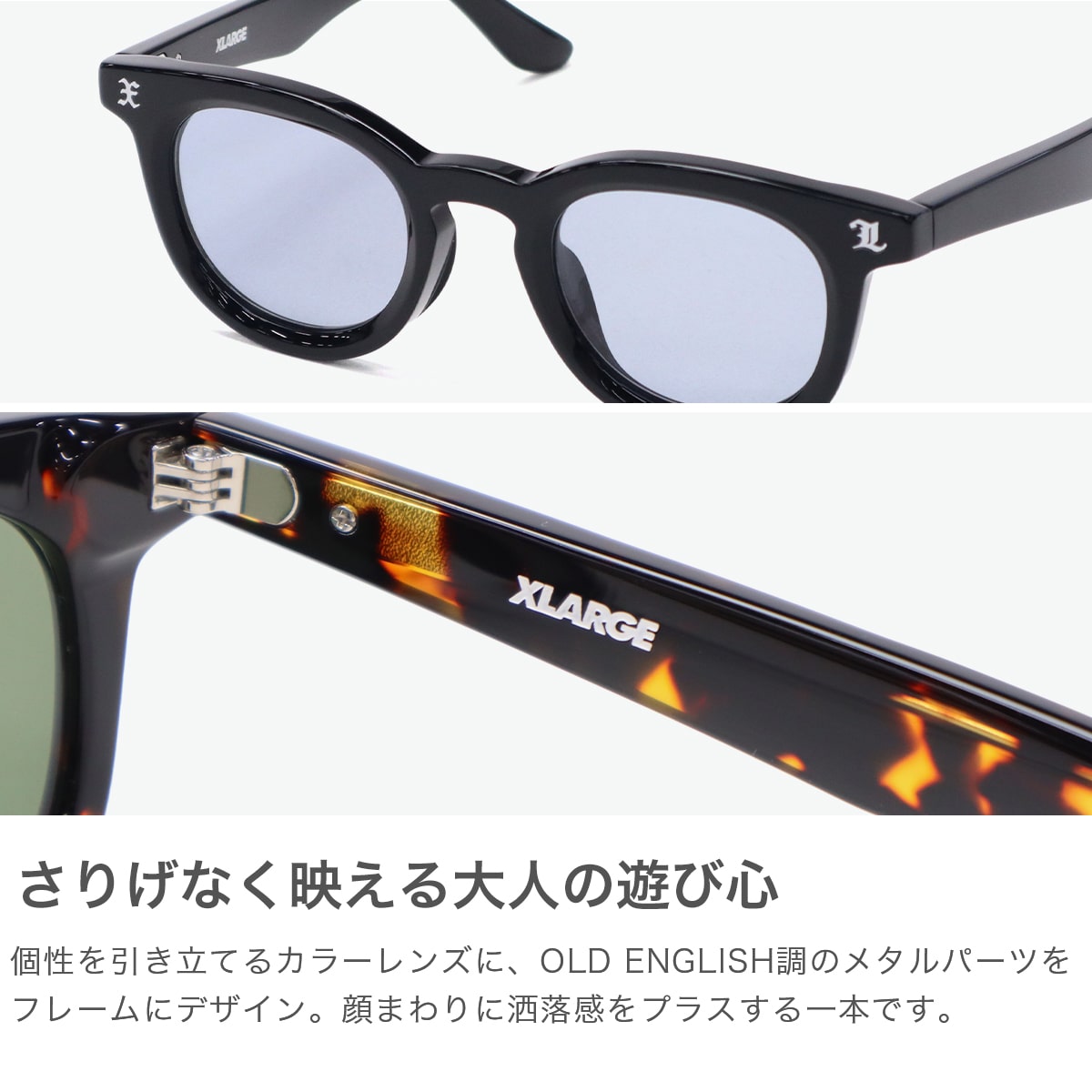 OLD ENGLISHロゴのメタルパーツが光る、XLARGEらしいストリート感漂うサングラスです。UV対策はもちろん、表情を邪魔しないレンズカラーとウェリントン型でどんなスタイルにもマッチするのでコーデのポイントにもなるアイテムです。