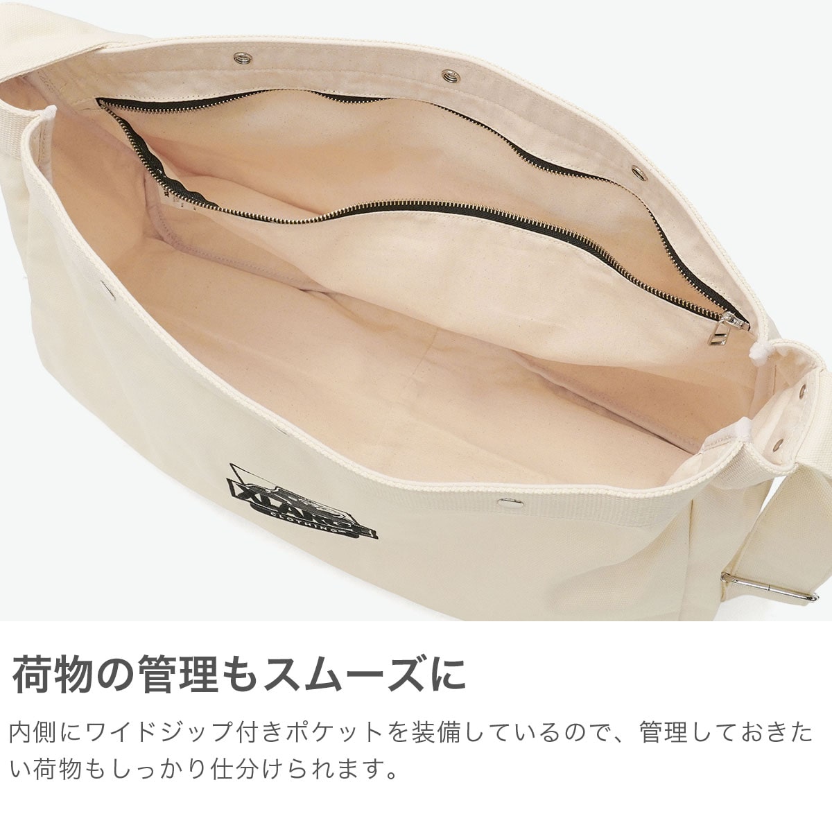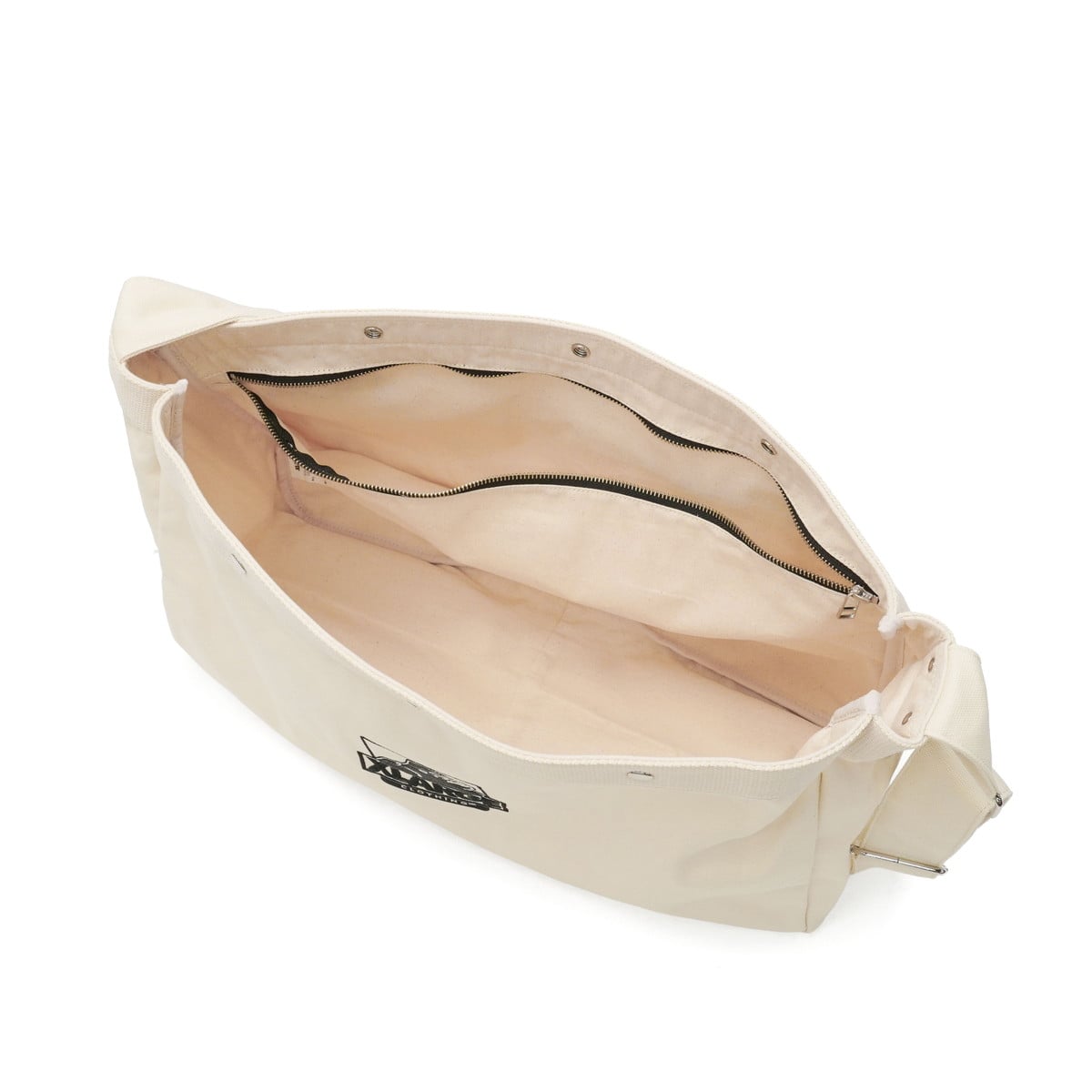 厚手布を使用したワイドショルダーバッグ。人気のニュースペーパーバッグデザインにアイコニックなOGロゴタグの刺繍が映える仕上がりになっています。ユニセックスで使用可能で、デイリーユースはもちろん、通勤や通学にも使える万能アイテムとなっています。